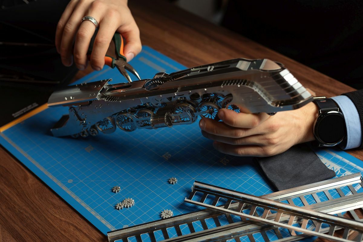 Комплект набора | 7 пластин с деталями, 38 дополнительных запчастей, пружина, плоскогубцы, напильник, салфетка для полировки, хлопковые перчатки, инструкция |
