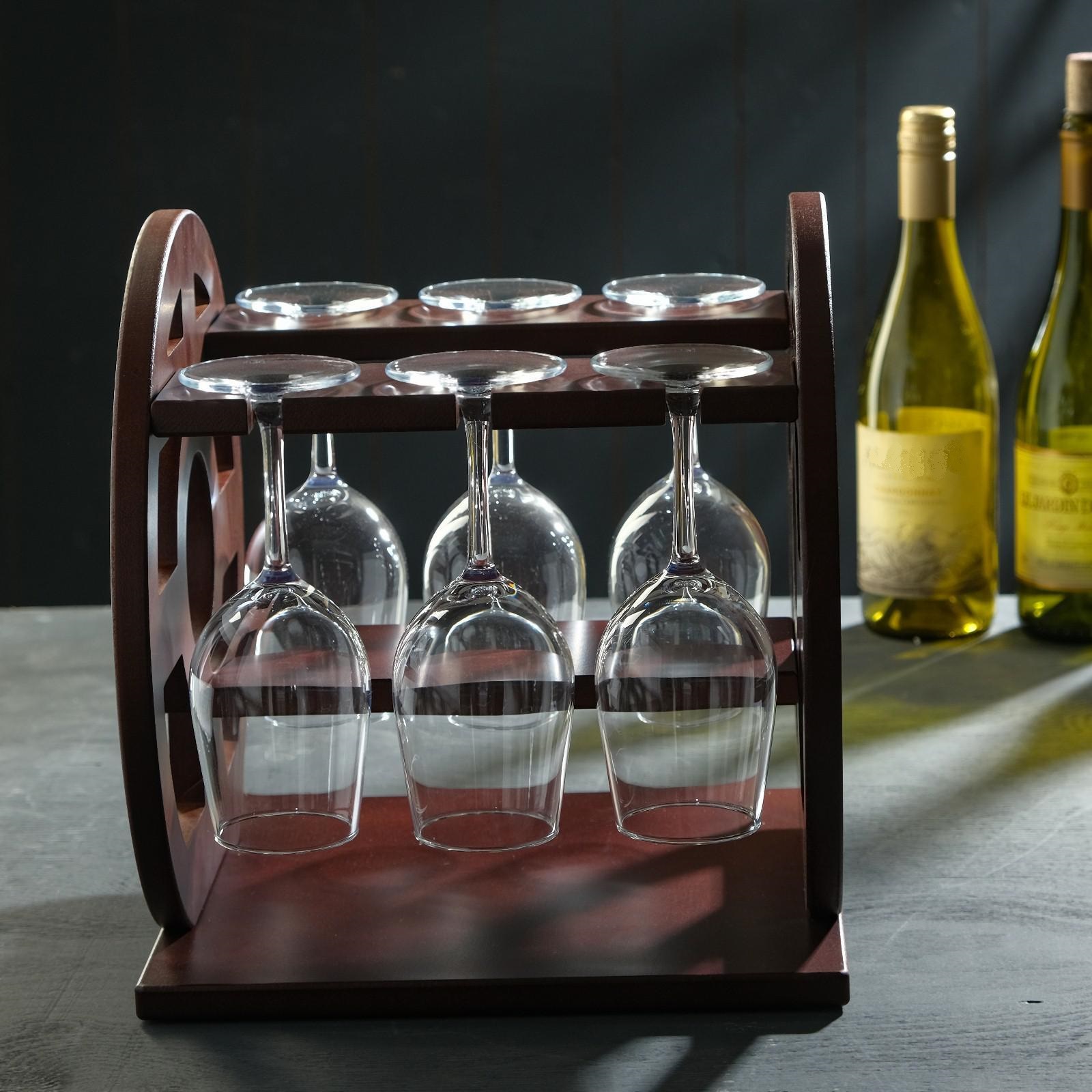 Мини-бар деревянный "Бочка", 6 фужеров в комплекте
