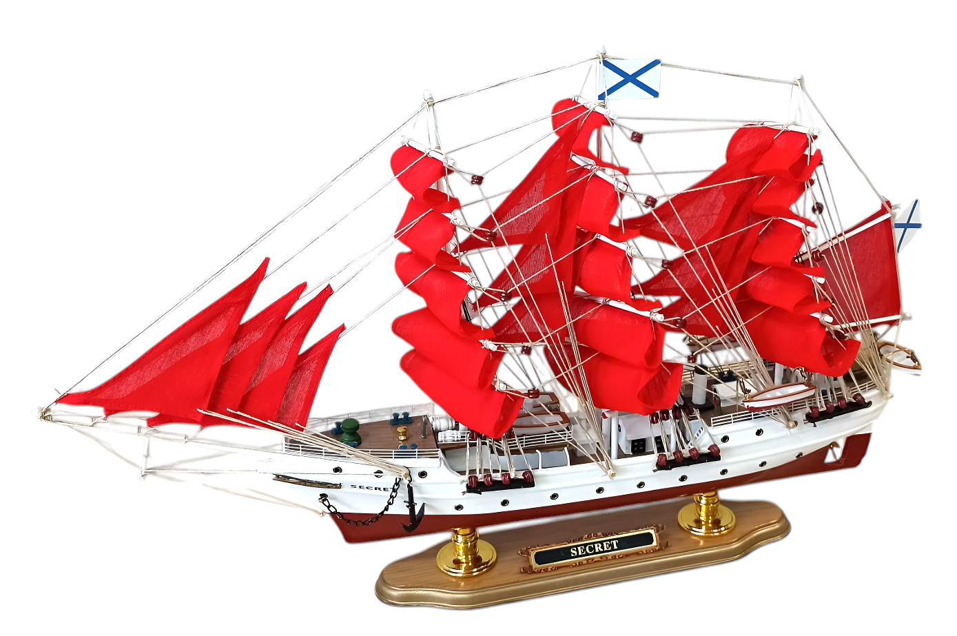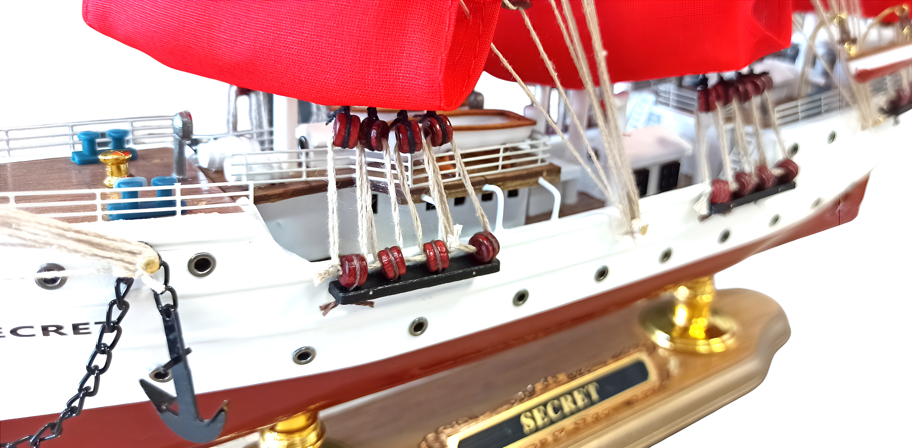 Макет парусника "Secret" передаёт облик корабля, запечатлённый в одноимённом фильме.