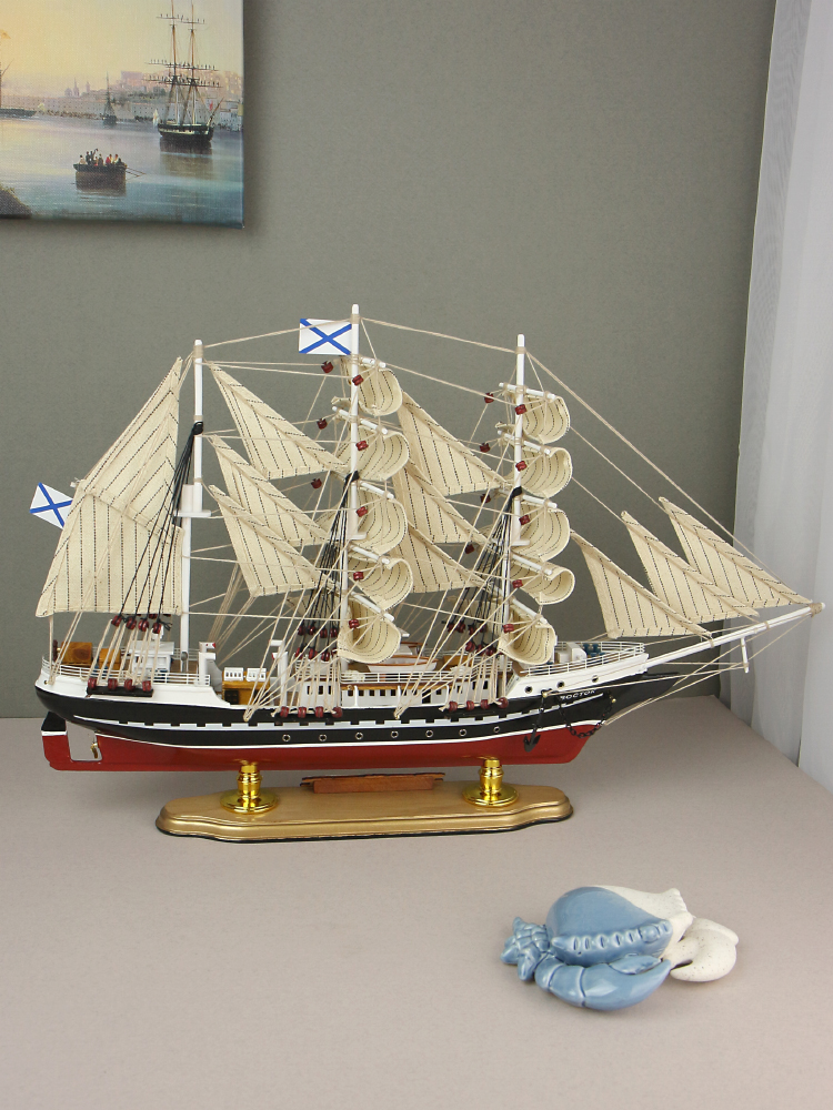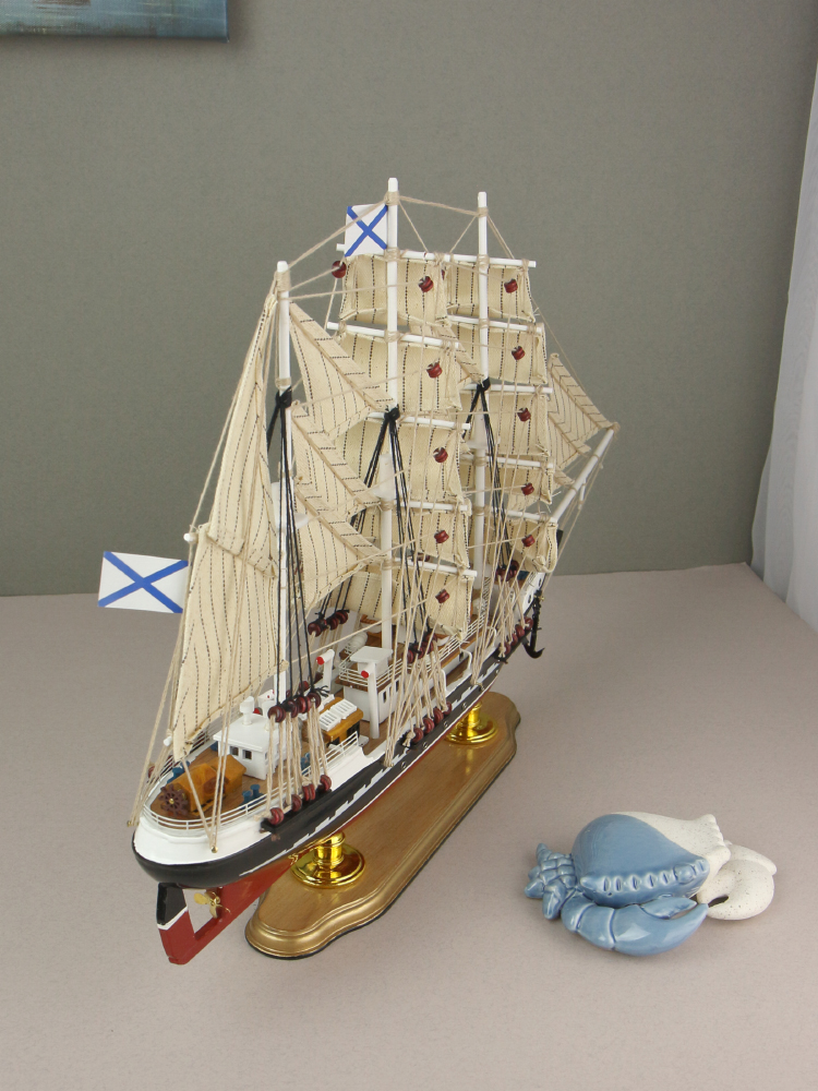 Его водоизмещение составляло 985 т.; паруса общей площадью 2287,1 м2 позволяли развивать скорость до 10 узлов.