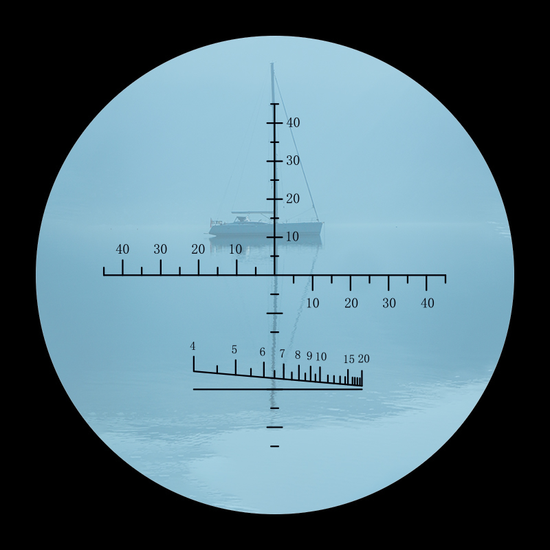 • Угломерная сетка и дальномерная шкала для измерения дистанции, углов, размера объектов