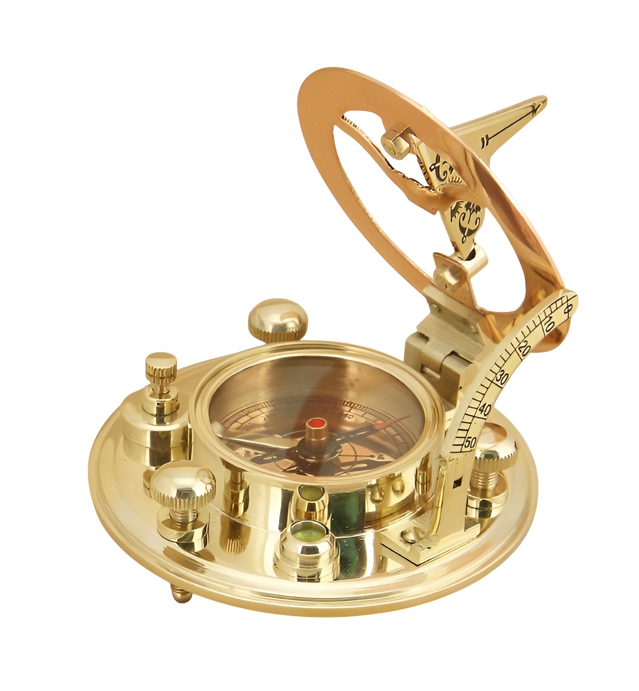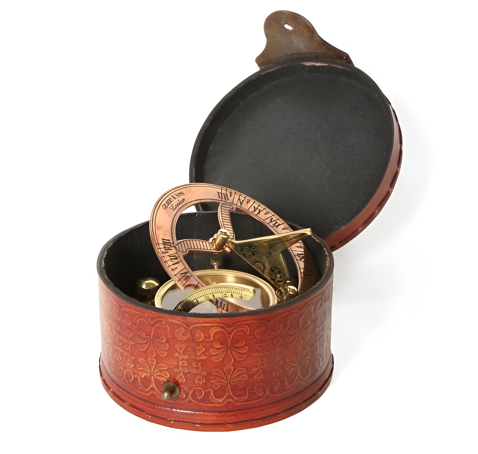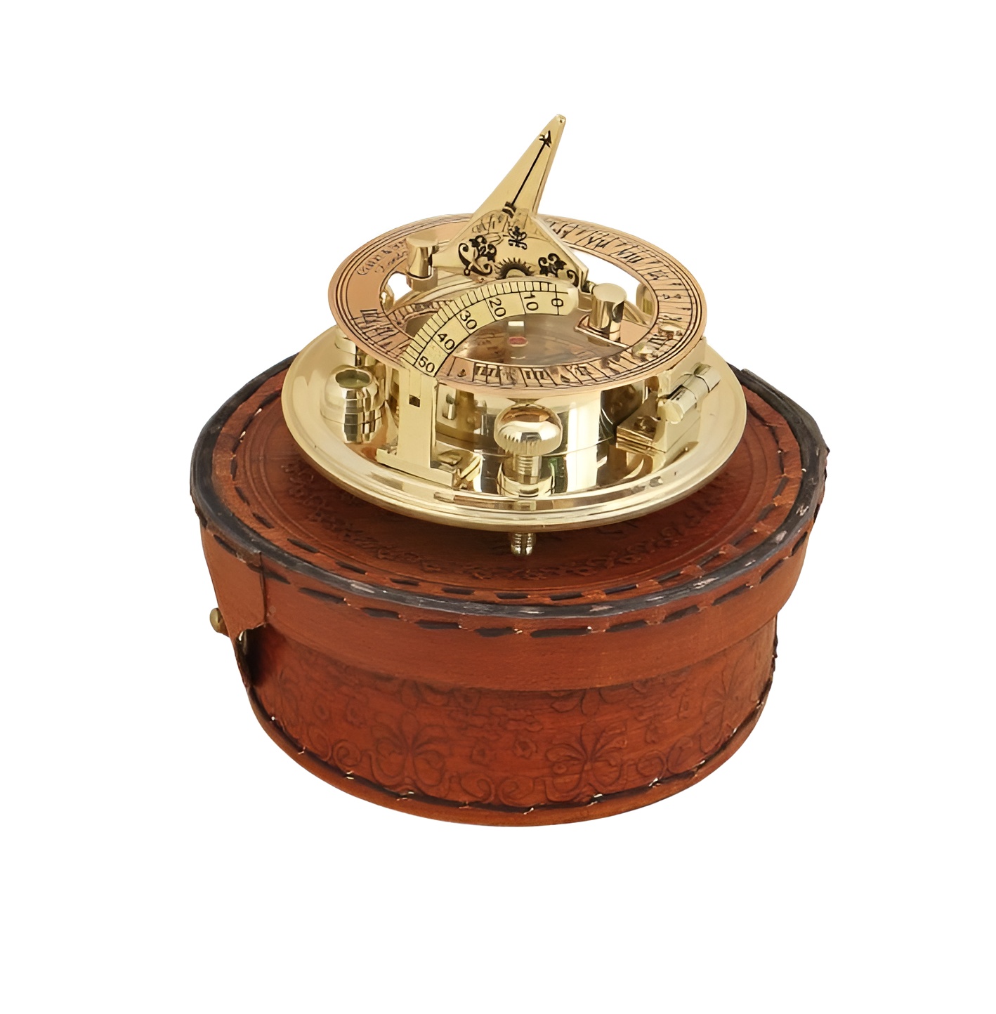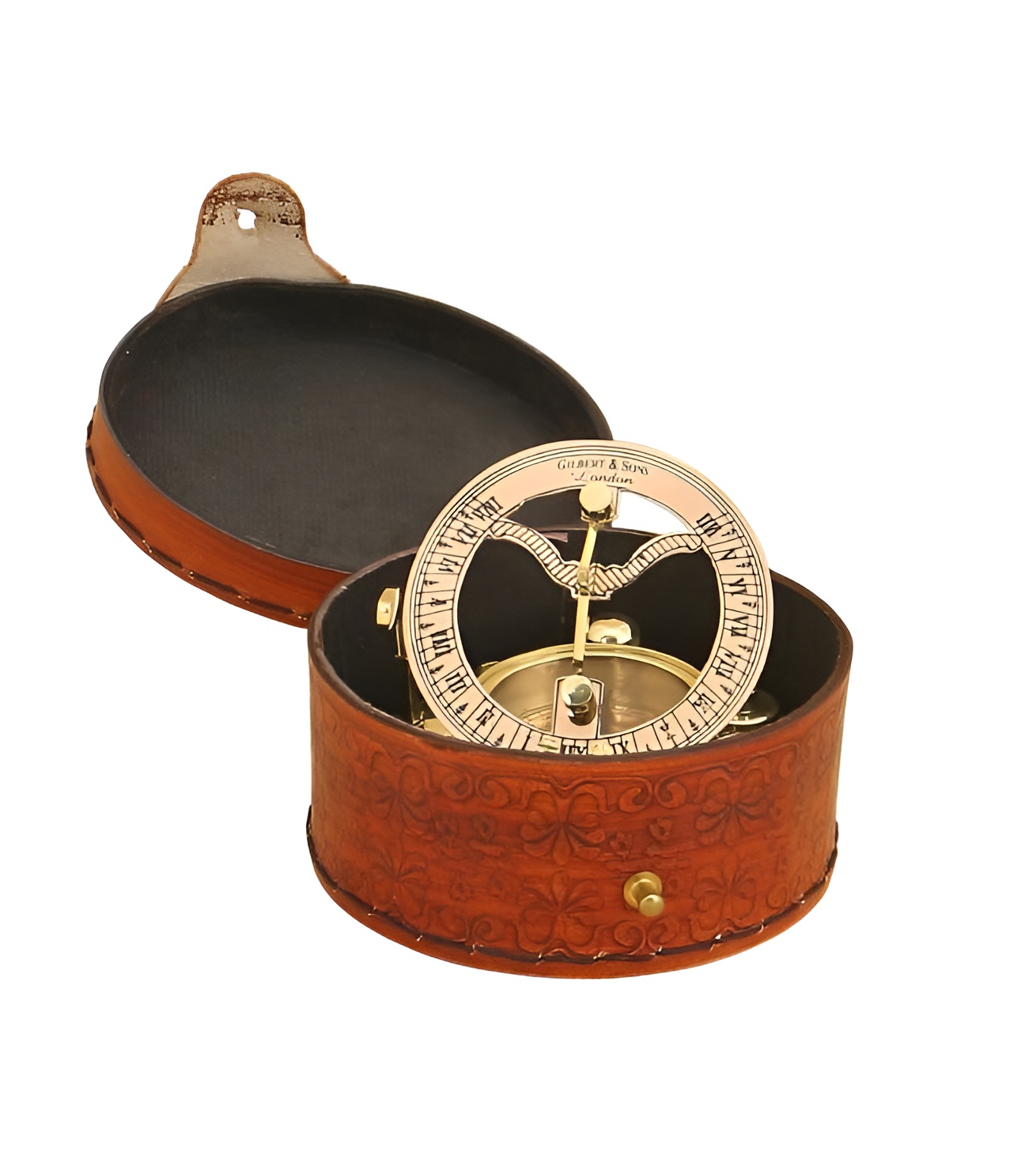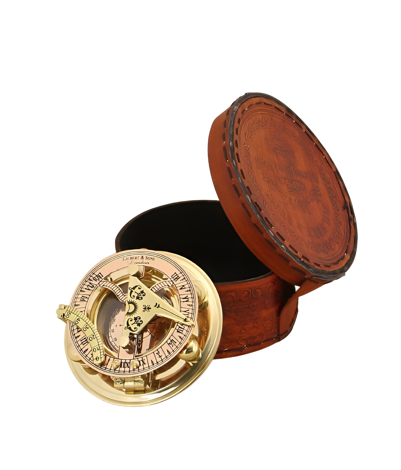Морской компас с солнечными часами в кожаном футляре