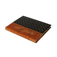 Составной переплёт ручной работы, украшен цветной кожаной вставкой, а также золотым и блинтовым тиснением.