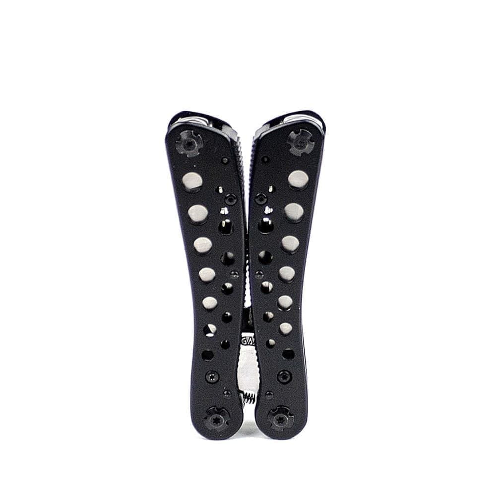 Рукоятки мультитула тоже сделаны из металла и покрыты черной краской, которая не стирается со временем. Поверхность накладок украшена при помощи круглых отверстий, которые, одновременно, помогают снизить вес инструмента. Ganzo G204 весит 253 грамма.