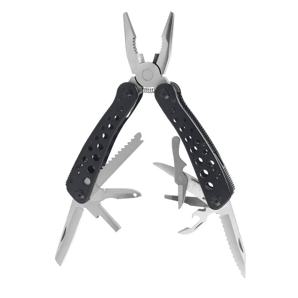 Модель Ganzo G204 оснащена всеми необходимыми инструментами, чтобы помочь справиться с неполадками туристического снаряжения, велосипеда или даже автомобиля. Помощь этого мультитула может понадобиться и в ходе проведения домашнего ремонта. Это полноразмерный инструмент, который удобно держать в ладони. Его центральный инструмент — это мощные плоскогубцы с кусачками и захватом для гаек или других круглых предметов. Плоскогубцы подпружинены, поэтому, когда инструмент готов к работе, они всегда будут оставаться в открытом состоянии. В ином случае, плоскогубцы убираются внутрь рукояток. Также в рукоятках размещены дополнительные инструменты, которые пригодятся и для ремонта, и для выполнения других необходимых во время отдыха на природе работ. Это ножи с прямым и серрейторным лезвием, небольшие подпружиненные ножницы, пила, шило, отвертка с прямым шлицем, открывалка для консервов. Помимо того, в отдельном резиновом блистере размещены дополнительные биты для отвертки: пять шестигранных, по три прямые и кресовидные, а также — магнитный переходник. Все инструменты мультитула изготовлены из стали 440С. Это нержавеющий сплав, содержание углерода в котором все же довольно высоко, чтобы металл был твердым.