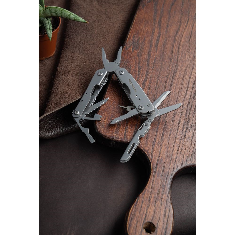 В этом мультиинструменте объединены 14 разных функций. В том числе: пилка для ногтей, отвёртка, плоскогубцы, нож, открывалка для коробок, консервный нож, ножницы, приспособление для разбивания стекла и другие приспособления. С помощью таких удобных орудий вы сможете выполнить множество стандартных операций, с которыми человек чаще всего имеет дело.