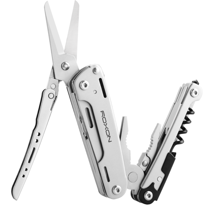 Модель Roxon STORM S801S создана по принципу классических мультитулов. Роль главного инструмента в нем выполняют плоскогубцы. Они дополнительно оснащены захватом для круглых предметов и функцией кусачек. Все остальные инструменты размещаются внутри двух металлических рукояток. В том числе, пользователям доступны пила, небольшой напильник, край которого используется как прямая отвертка, открывалка и штопор, стеклобой. Все перечисленные инструменты находятся в одной рукоятке, а в другой размещены нож с гладко заточенным лезвием, стропорез, консервный нож, шило, усиленные ножницы, линейка, держатель для бит, выступающий также в качестве крестообразной отвертки.