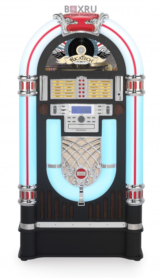 Ricatech RR3000 выполнен в дизайне музыкальных автоматов Juckebox 50-60-х годов. Аппарат имеет в высоту около 110 см и благодаря яркой красочной подсветке сразу привлекает к себе внимание. Однако кроме ностальгического дизайна Ricatech RR3100 обладает широкими функциональными возможностями и качественным звуковым трактом, способным удовлетворить запросы многих меломанов.