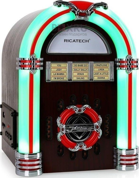 Все музыкальные автоматы от Ricatech оснащены разноцветной подсветкой, выполненной с помощью ярких светодиодов. Сопровождающее воспроизведение музыки яркое цветовое шоу в темной комнате создаст в доме ощущение праздника, да и просто улучшить настроение. По качеству звучания Ricatech мало в чем уступает традиционным мини-центрам, однако выделяется на их фоне не только внешней привлекательностью, но и удобством использования. Для того, чтобы начать пользоваться системой, не придется долго изучать инструкцию, и в то же время функциональные возможности Ricatech вполне достаточны для большинства пользователей.