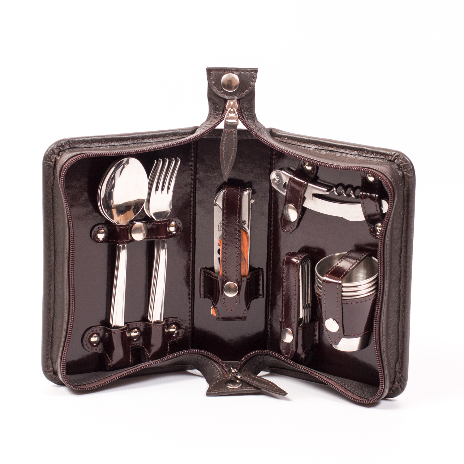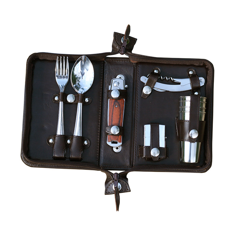 Набор дорожный в сумке из натуральной кожи (4 персоны)