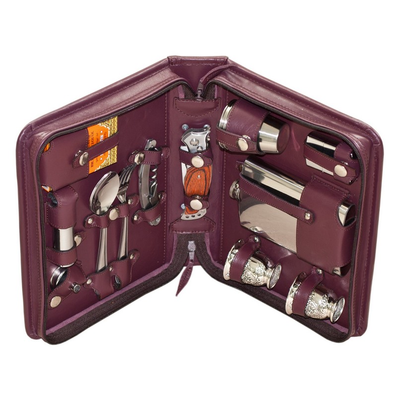 Набор дорожный в сумке из натуральной кожи (2 персоны), арт.204КК2