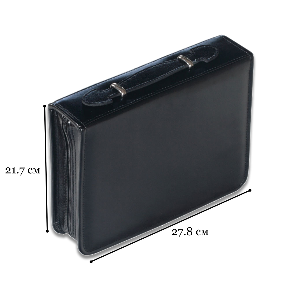 Футляр сделан в форме дипломата, имеет удобную ручку.