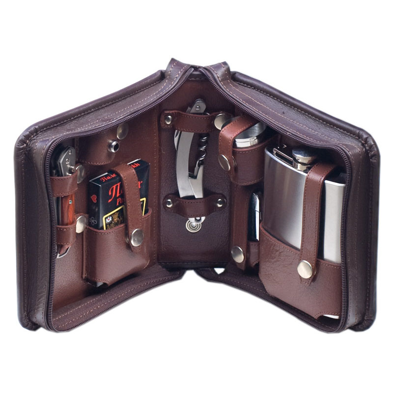 Набор дорожный в сумке малой из натуральной кожи (2 персоны), арт.202КК2