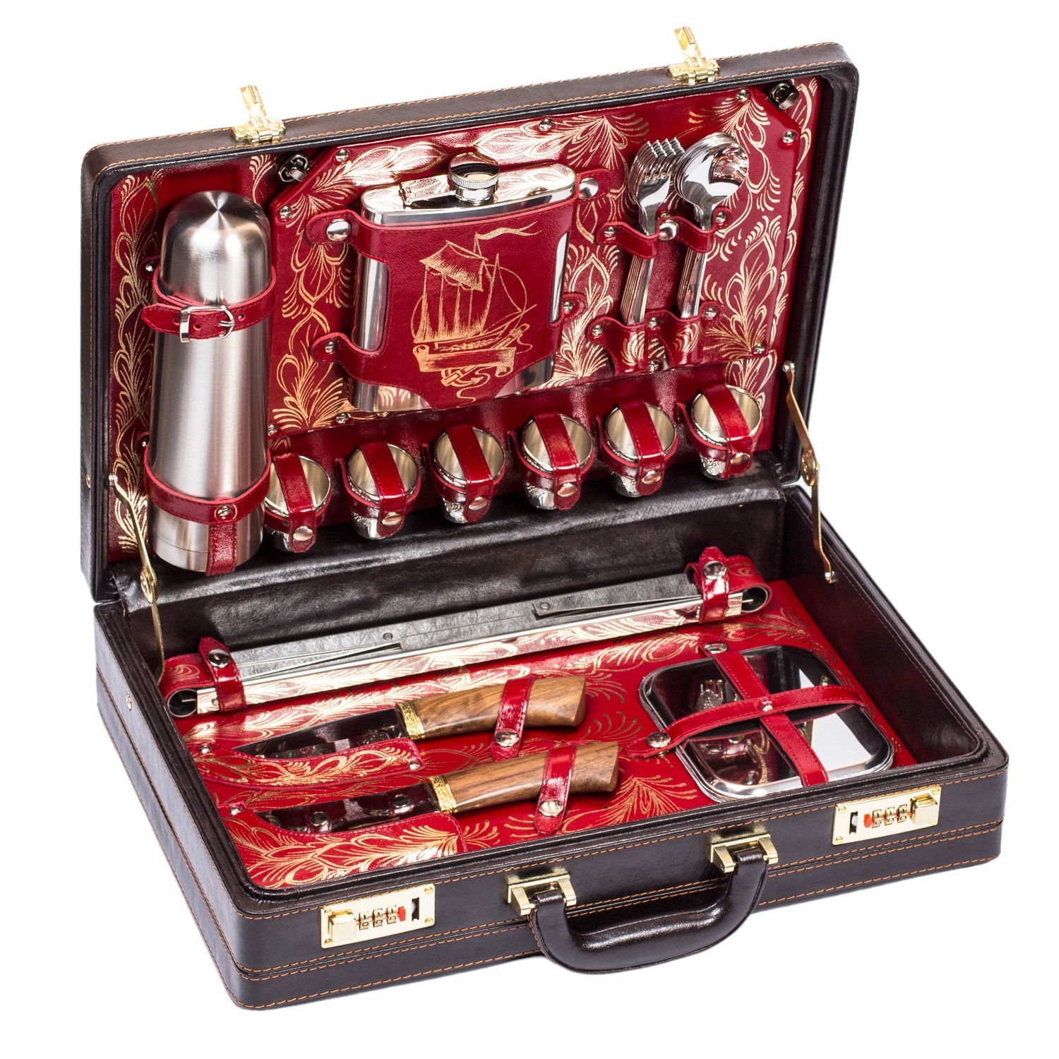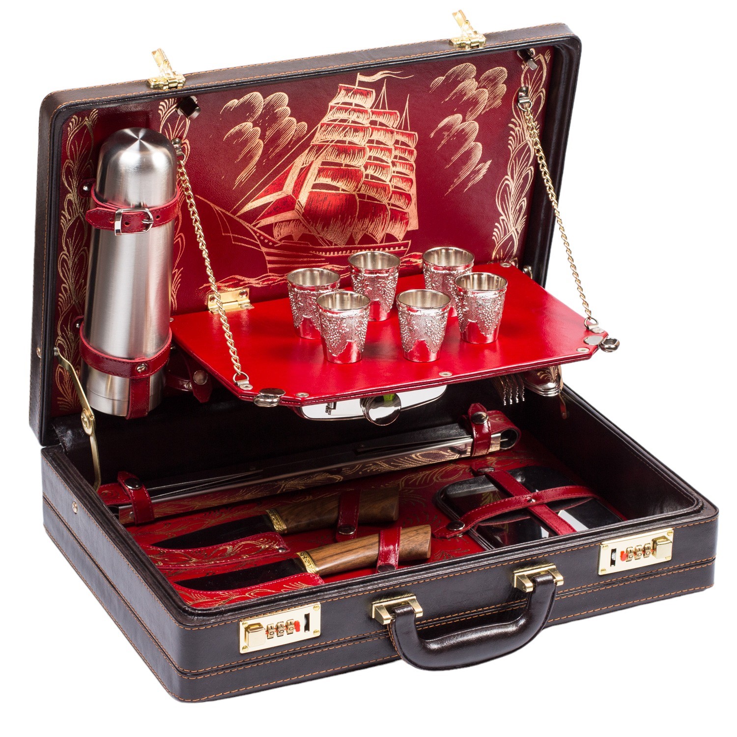 Кейс с внутренней отделкой из натуральной кожи, росписью ручной работы и откидным столиком | 1шт. |