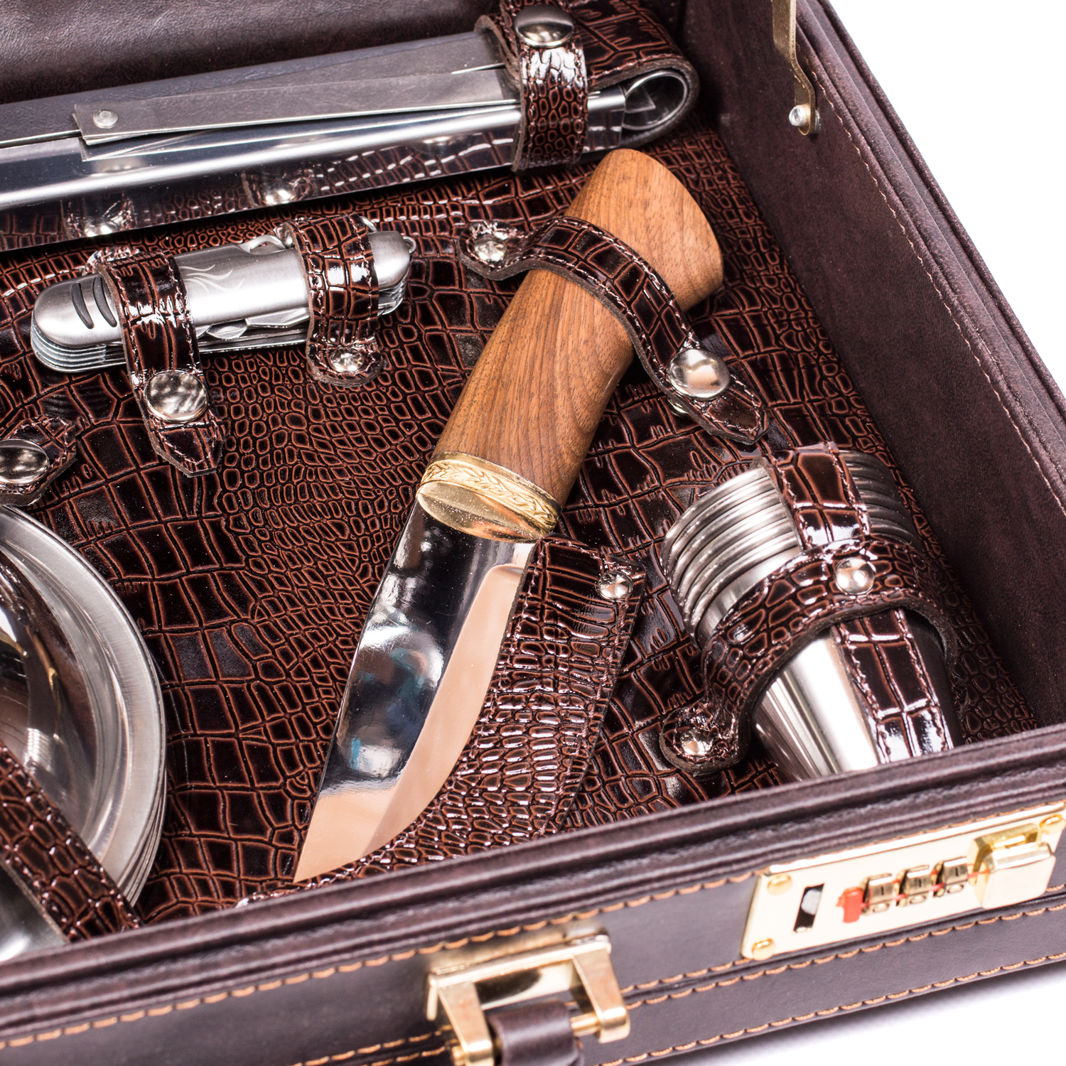 Набор подарочный «Дорожный» (6 персон) с мангалом, коричневый
