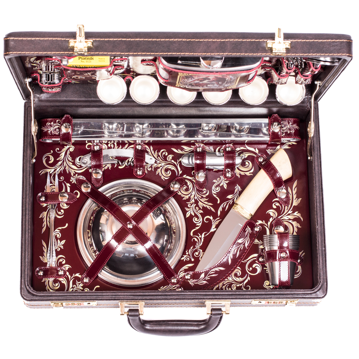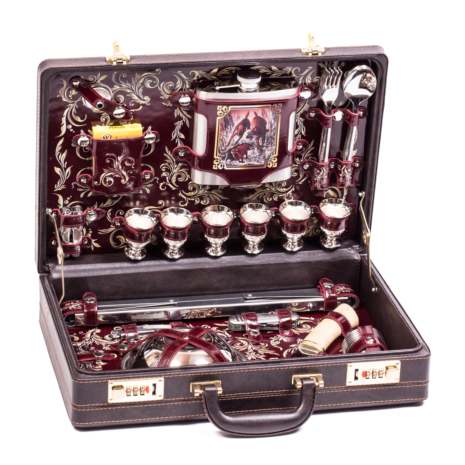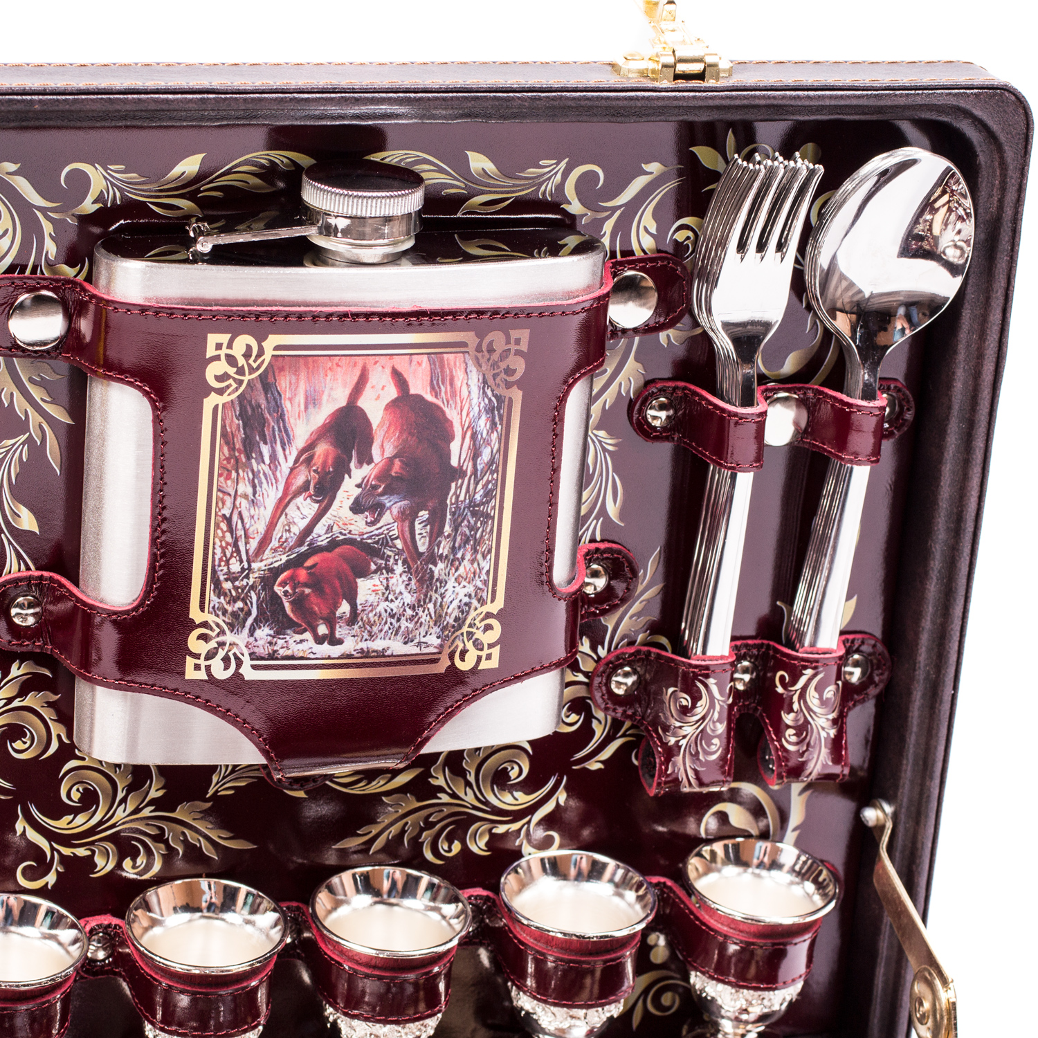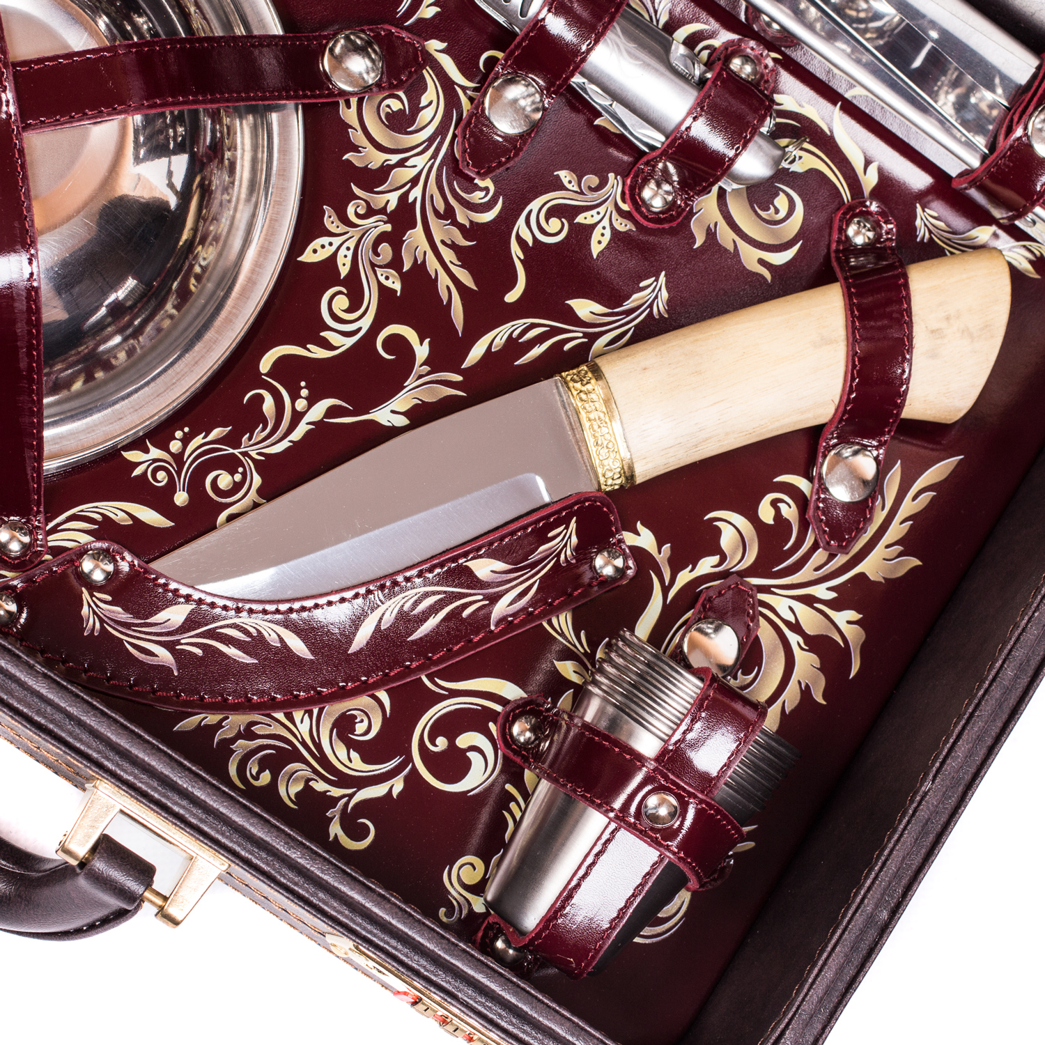 Набор подарочный «Дорожный» (6 персон) с мангалом, бордовый принт