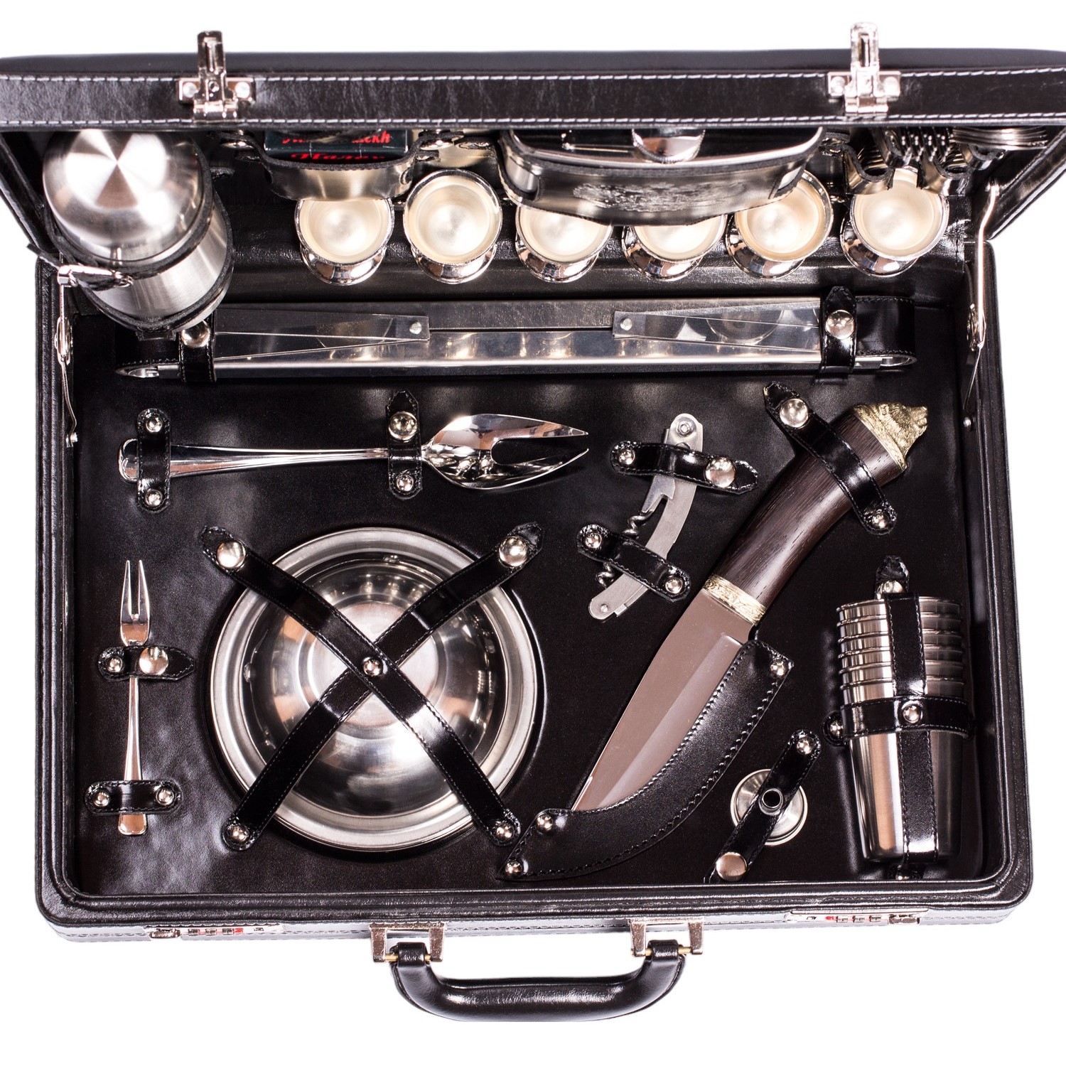 Подарочный набор Премьер-2 - идеальный выбор для тех, кто любит проводить время на природе в компании друзей или семьи. Этот набор в черном оформлении станет отличным подарком для любого пикника или отдыха на свежем воздухе.