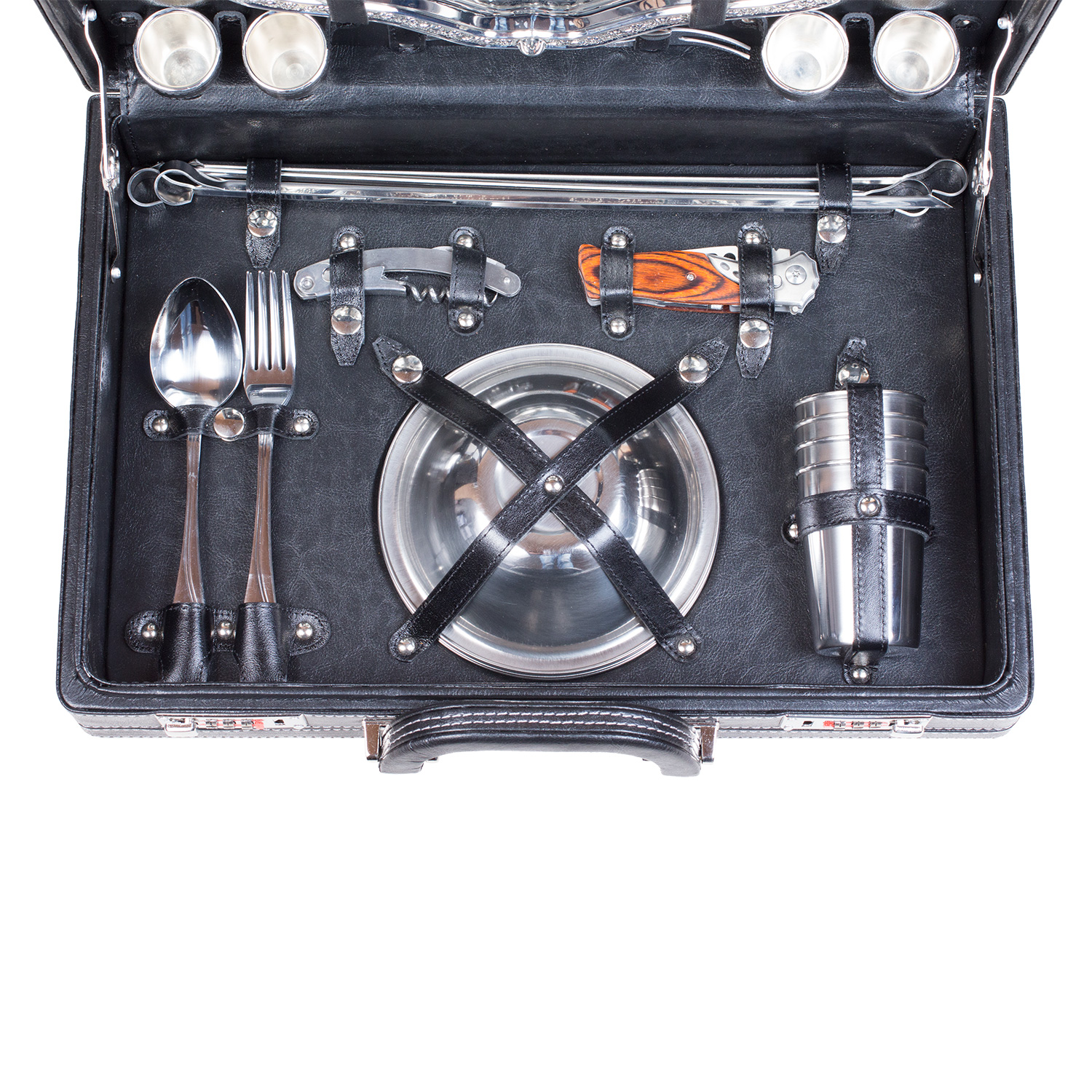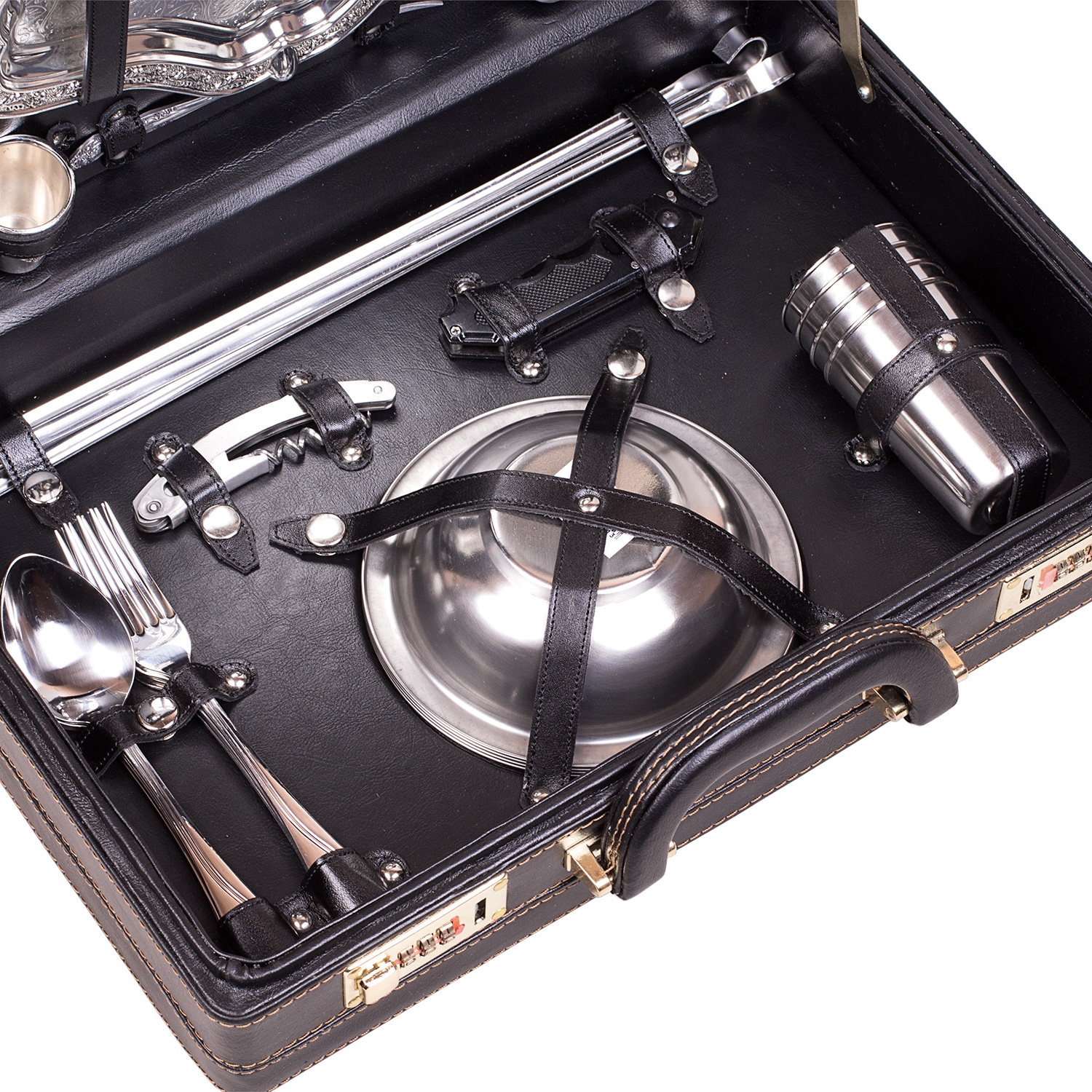 Кейс Турист не только удобен в транспортировке, но и стильно дополнит ваш образ на пикнике. Его классический дизайн и прочные материалы делают его надежным защитником содержимого от внешних воздействий. Такой набор - отличный выбор для тех, кто ценит комфорт и качество.