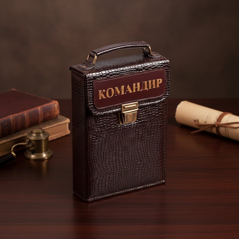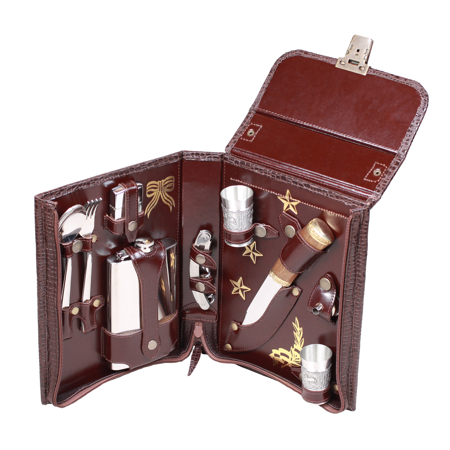 Набор в сумке-планшете из натуральной кожи «Командир» (2 персоны) (роспись)