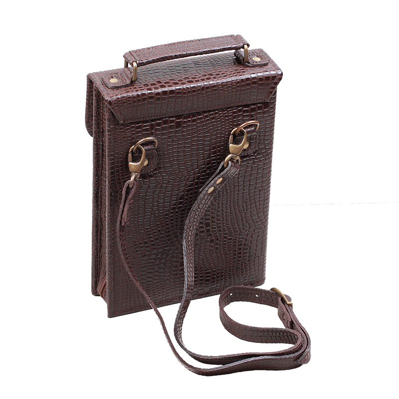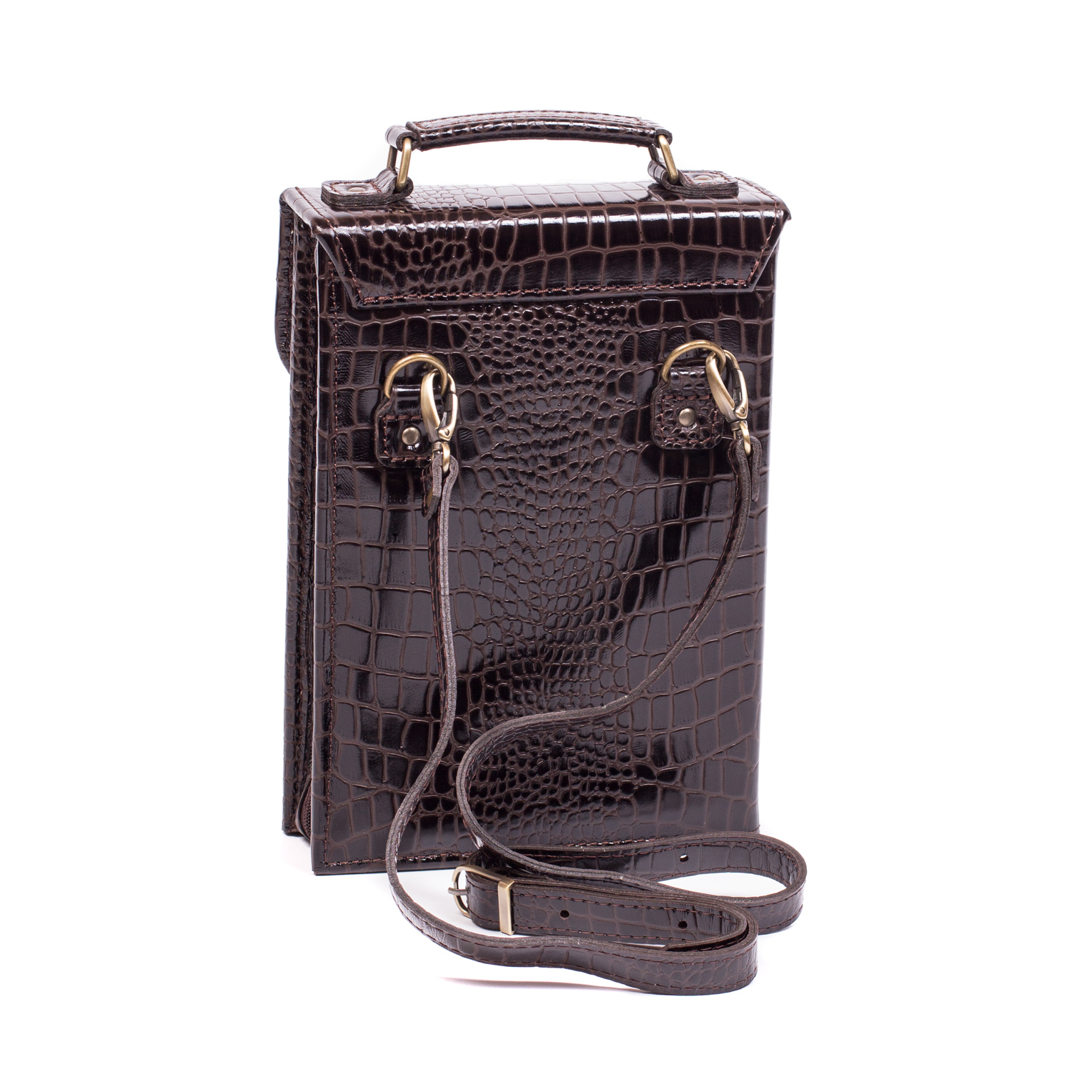 Дорожный набор в сумке-кейсе из натуральной кожи с фактурой "под рептилию" с замком на пряжке и молнии.