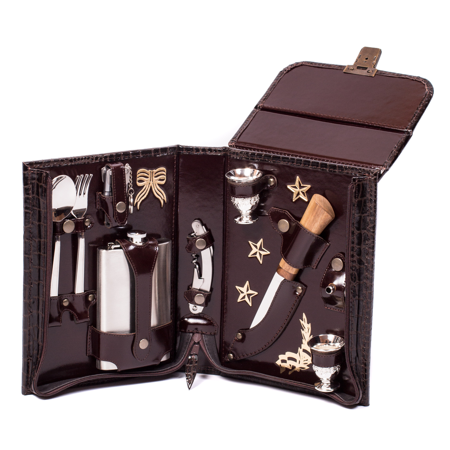 Набор в сумке-планшете из натуральной кожи «Командир-2» (2 персоны)