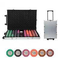 Всего в наборе 1000 фишек шести номиналов. Фишки каждого номинала имеют свой цвет. Также имеются: три колоды карт из 100% пластика, пять игральных костей и фишка дилера.