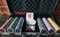 Все фишки, равно как и другие компоненты набора: 2 колоды карт (по 54 листа в каждой), игральные кости (5шт), фишка дилера.