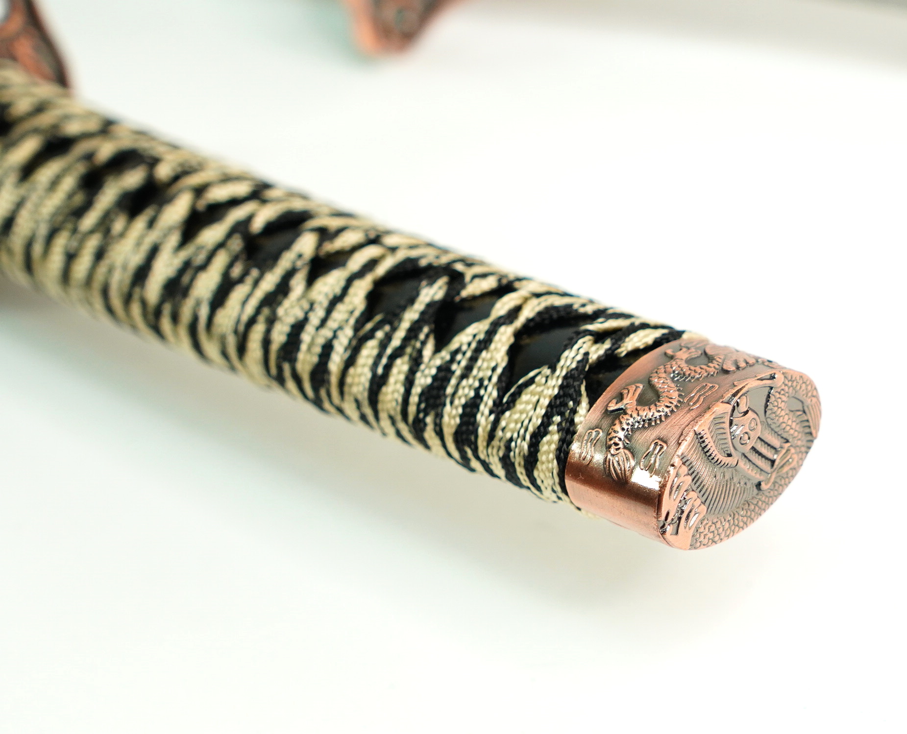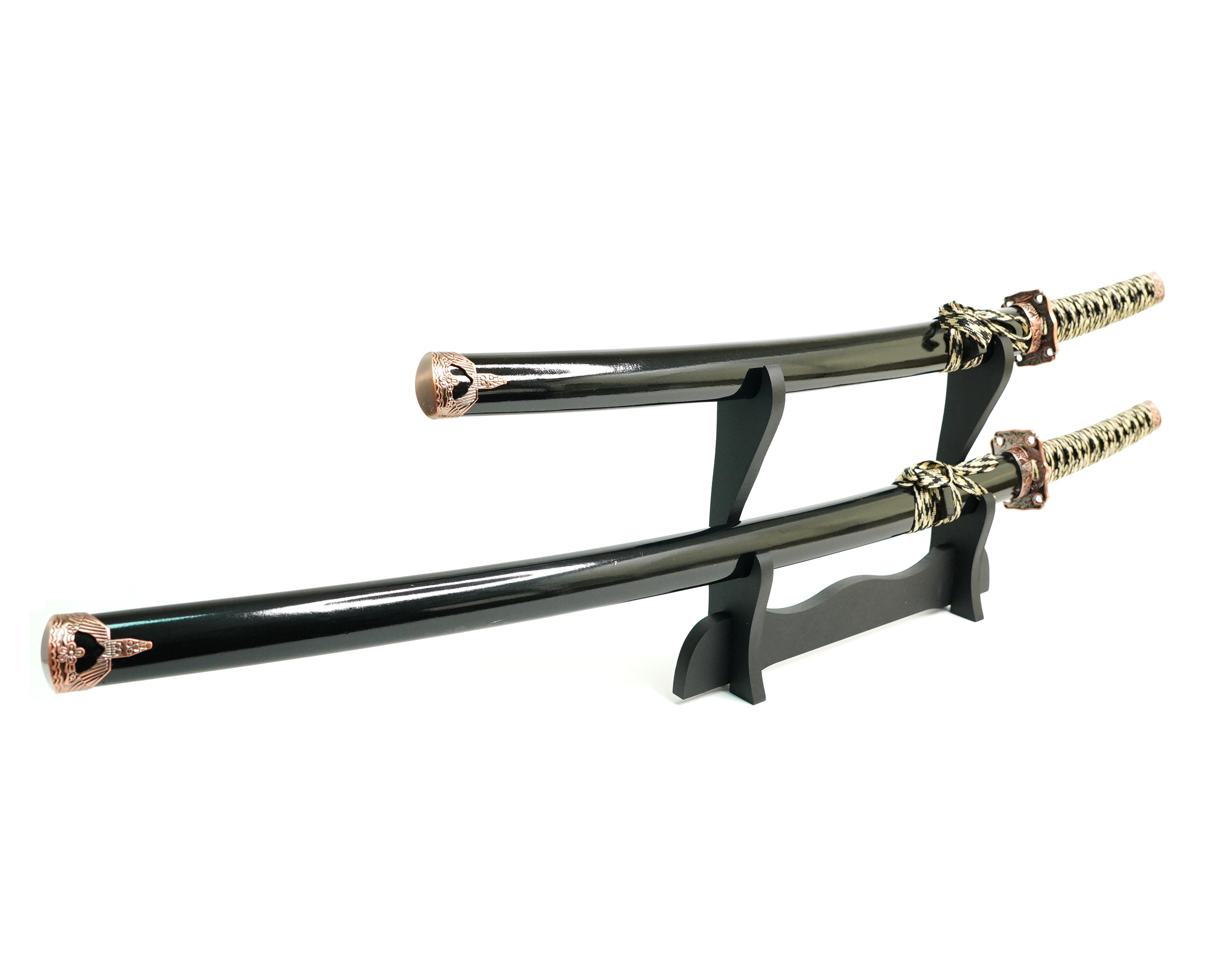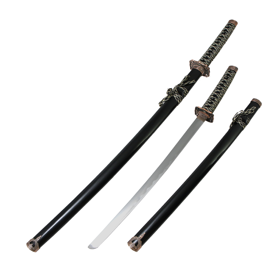 Набор из двух японских мечей с черными классическими ножнами и цубой окрашенной под медь с изображением дракона