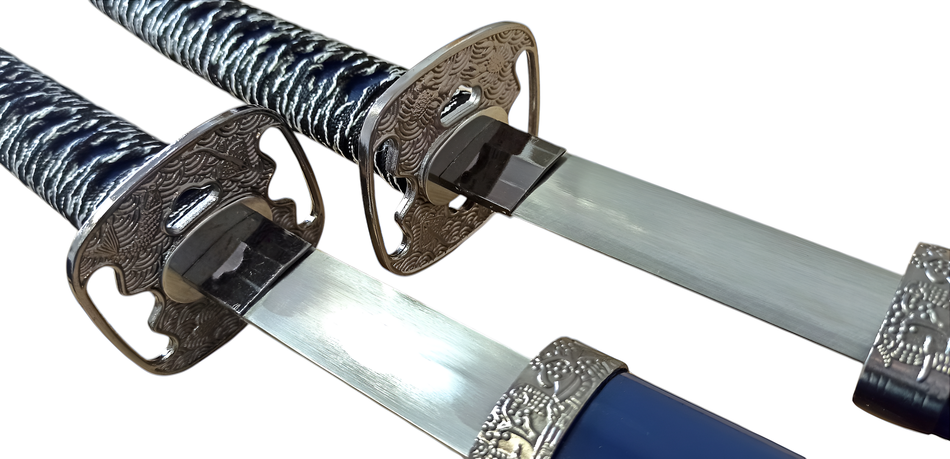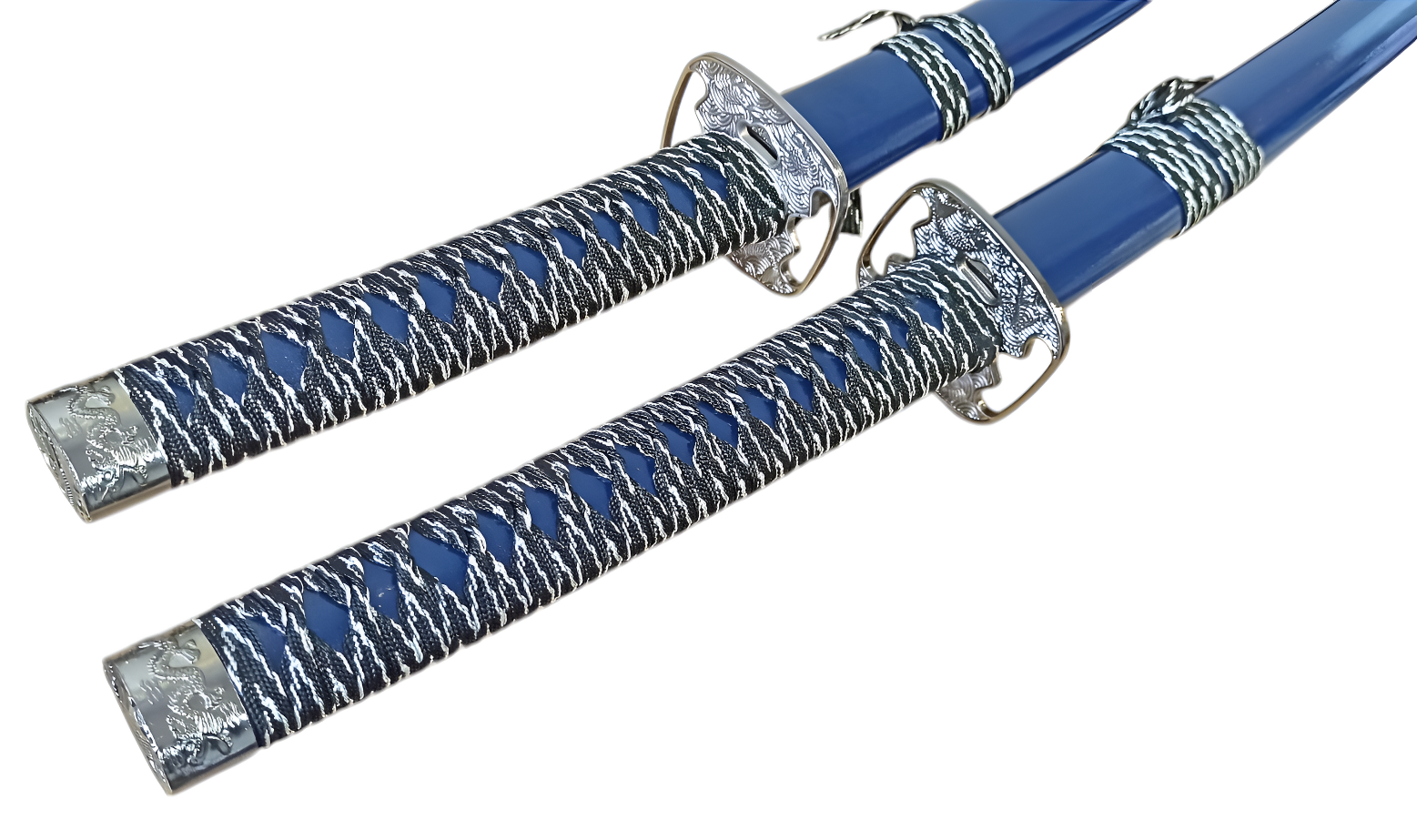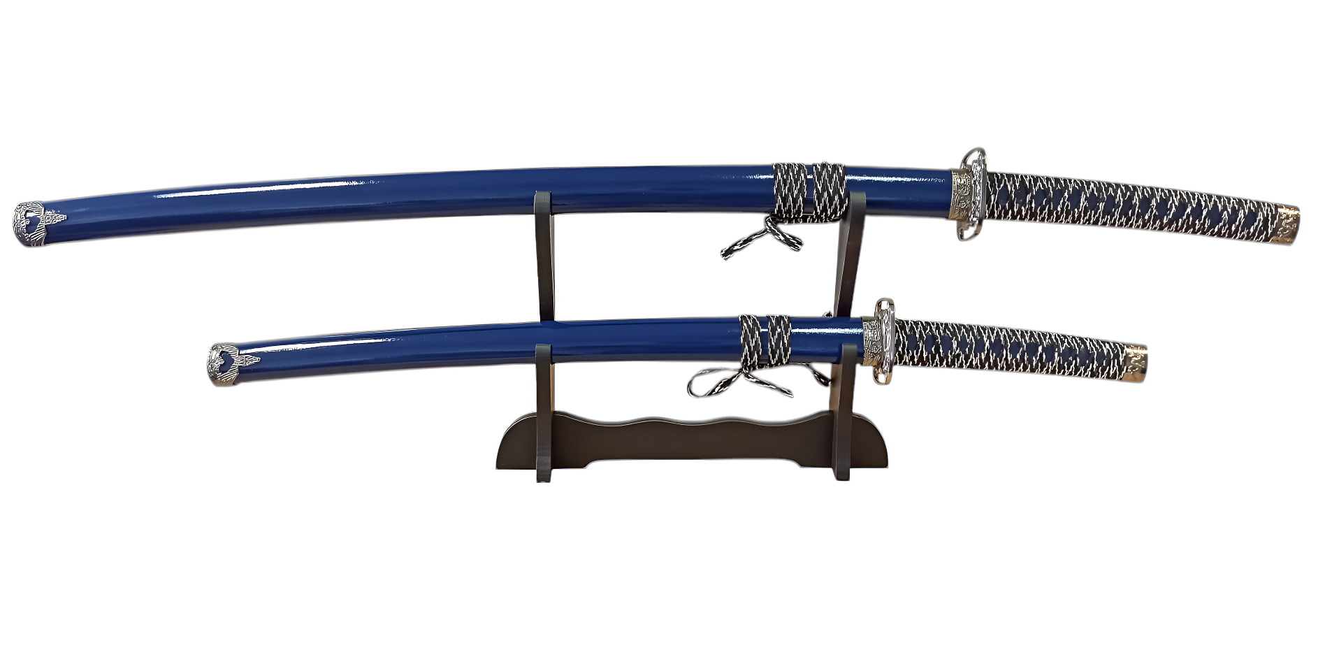 Дайсё (пара) самурайских мечей (катана и вакидзаси), ножны синие