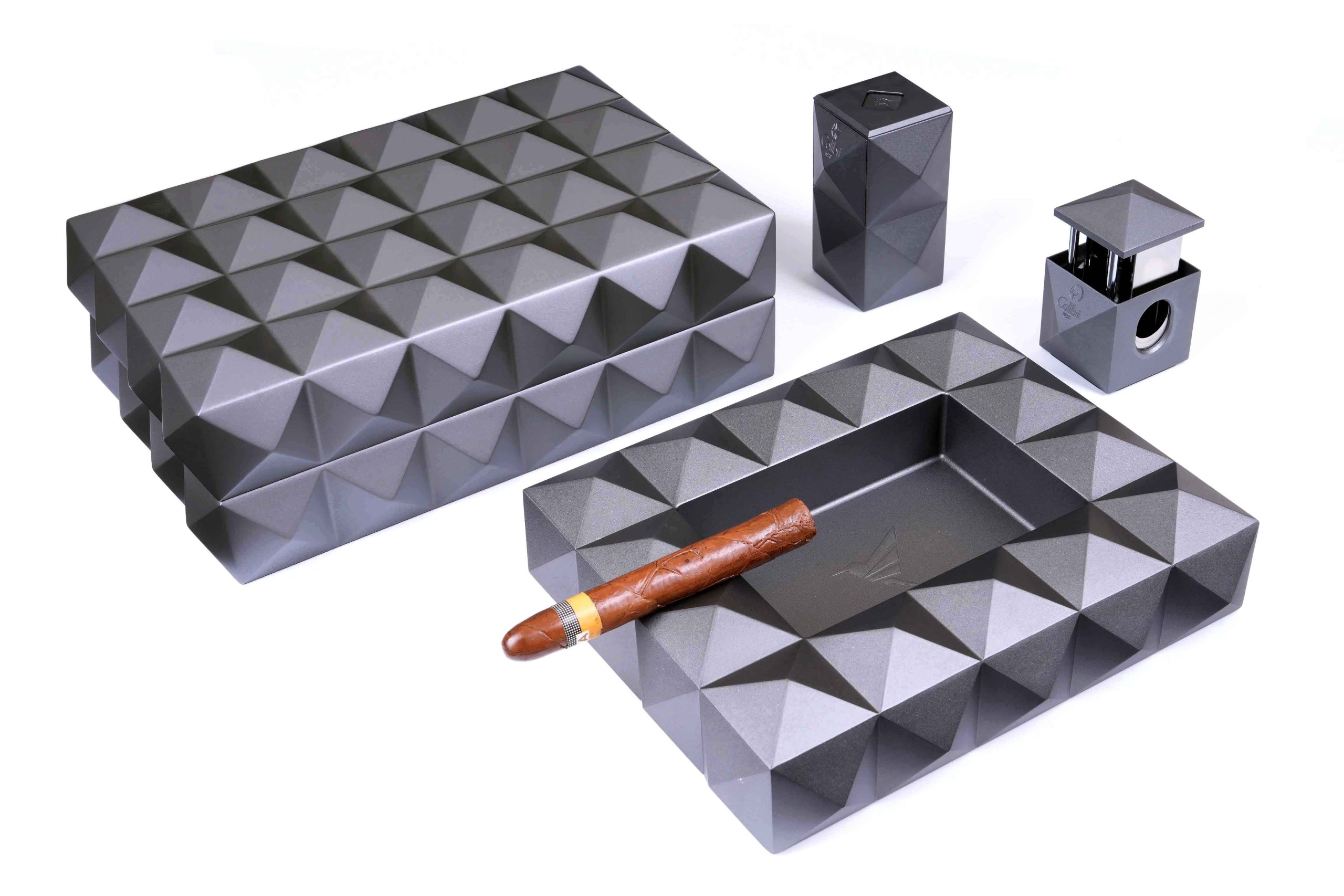 Язык дизайна, заимствованный из серии роскошных настольных хьюмидоров и пепельниц для сигар Colibri Quasar с четырехсторонним пирамидальным рисунком, делает резак Quasar красивым и обманчиво простым.