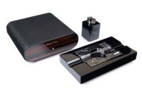 Настольный набор элитных сигарных аксессуаров от итальянской компании Fabrizio Gentili, состоящий из трех предметов: хьюмидора для хранения 20-ти сигар, элегантной пепельницы и турбозажигалки.