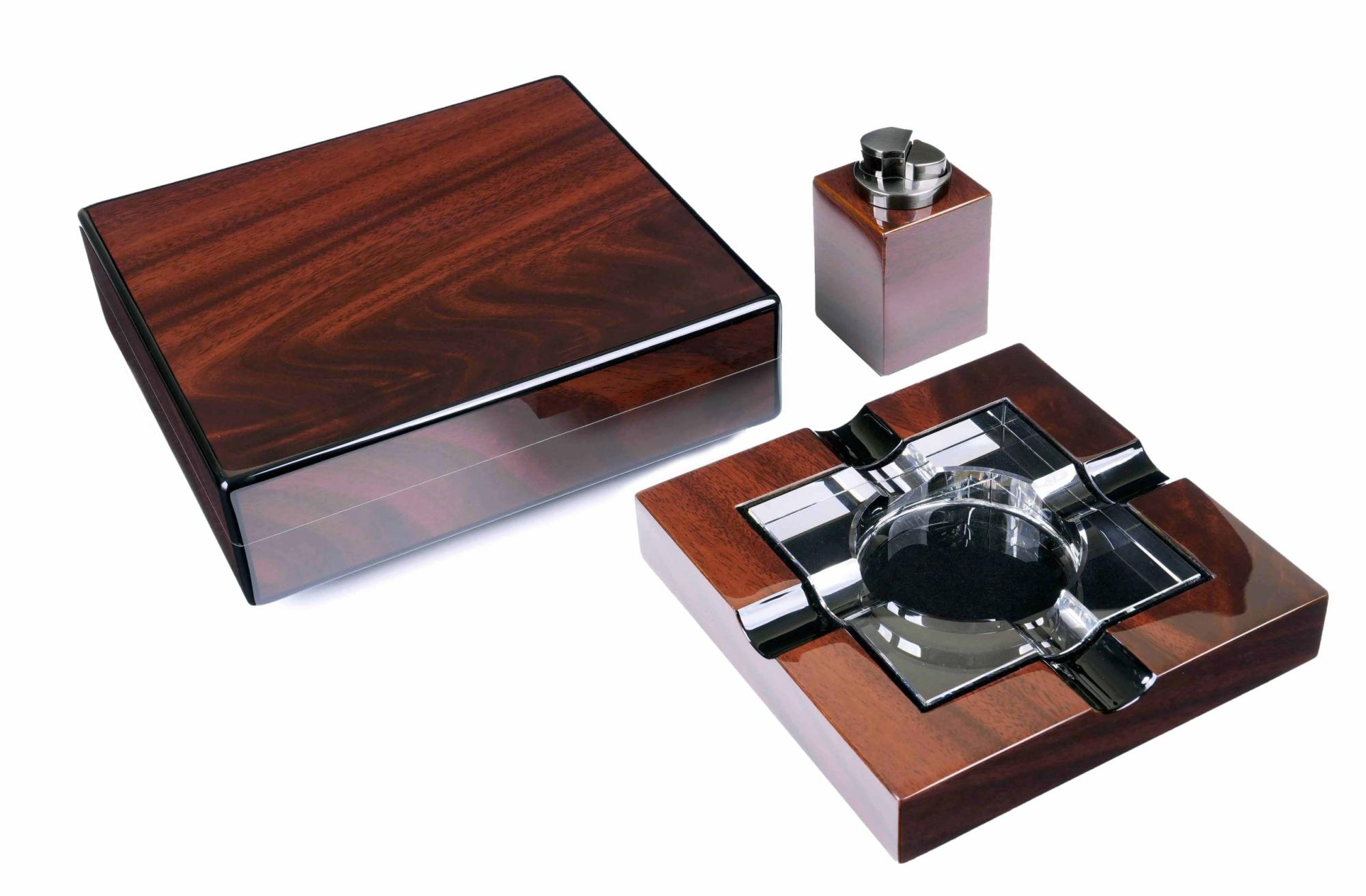 Набор сигарных аксессуаров производства американской компании Howard Miller, состоящий из трех предметов: хьюмидора для хранения сигар, элегантной пепельницы и зажигалки. Идеальный подарок для любого ценителя сигар.