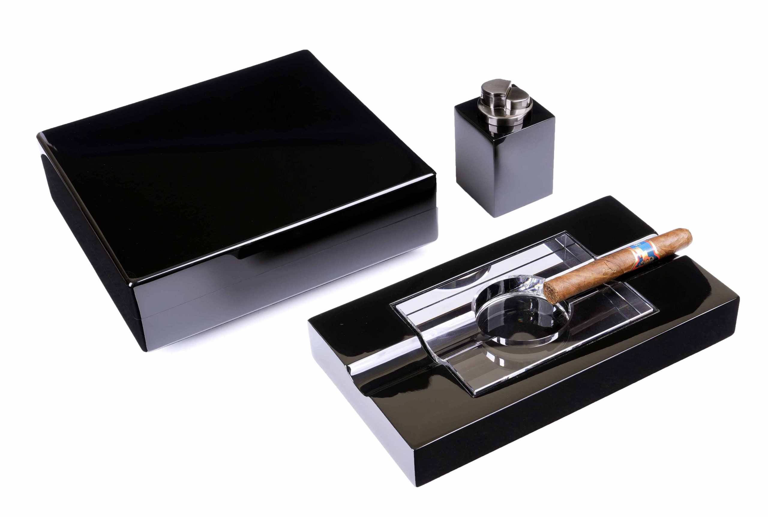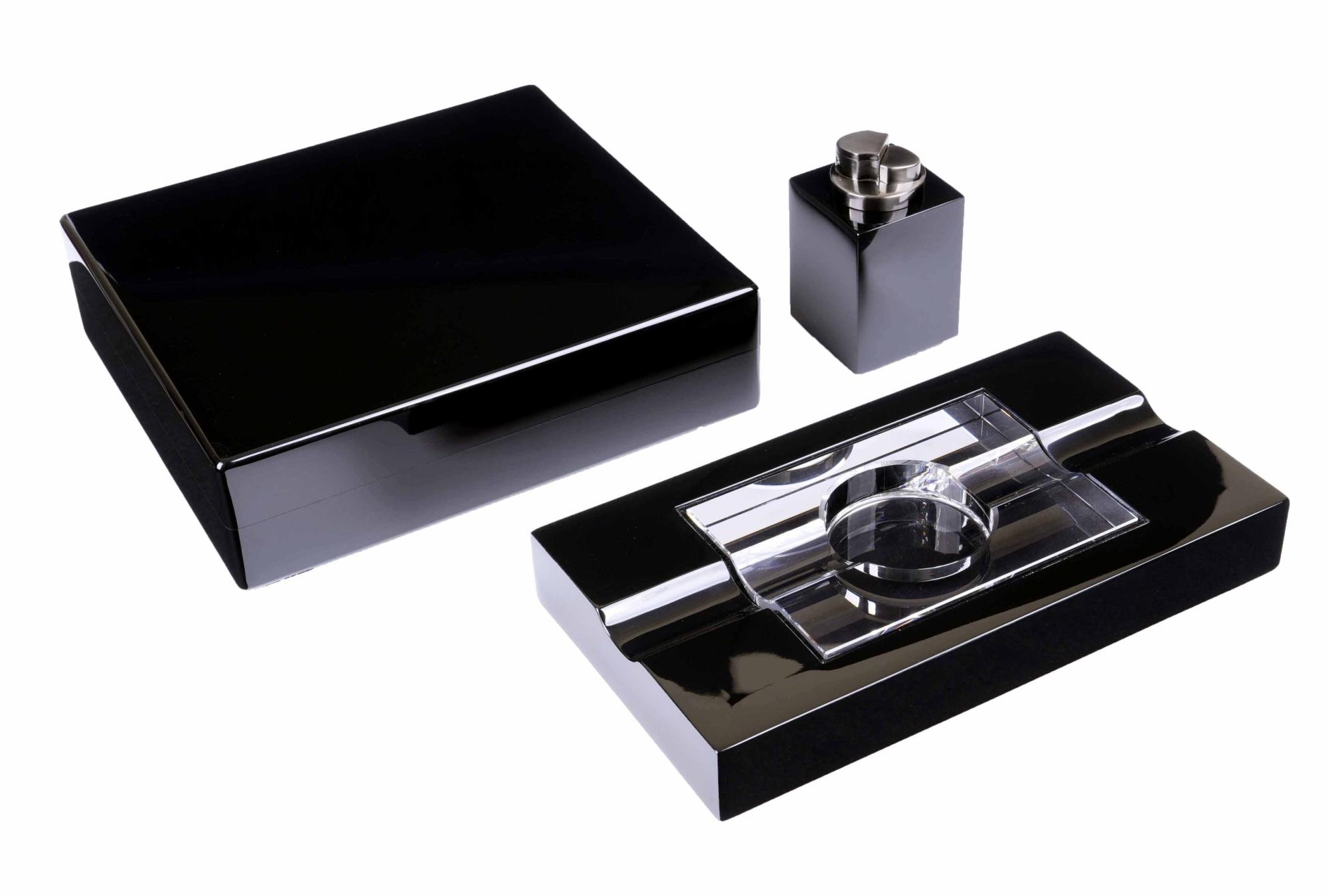 Набор сигарных аксессуаров производства американской компании Howard Miller, состоящий из трех предметов: хьюмидора для хранения сигар, элегантной пепельницы и зажигалки. Идеальный подарок для любого ценителя сигар.