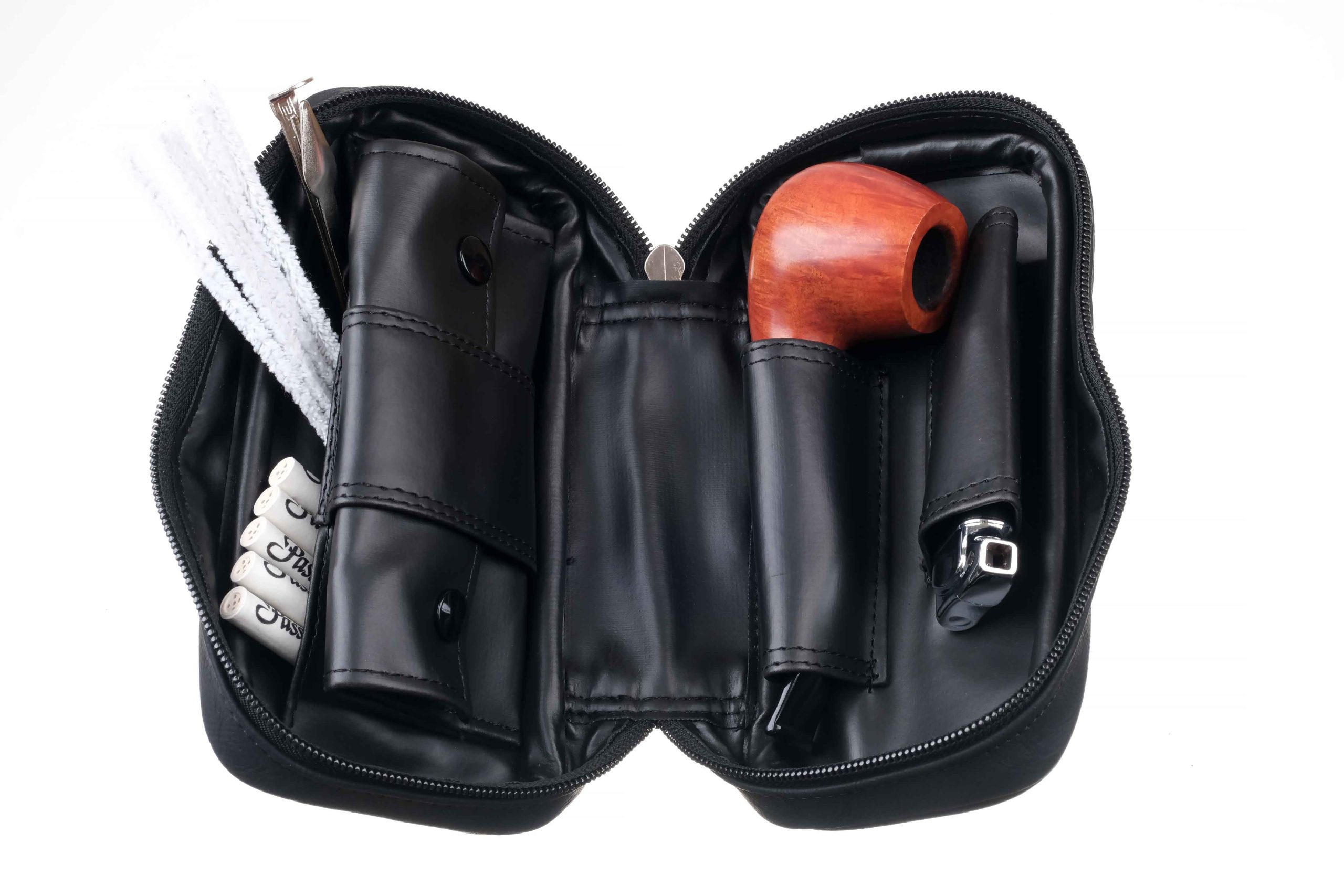 1. Кожаная сумка на 2 трубки с отделениями для аксессуаров. Размер сумки: 20 х 10 х 6,5 см.