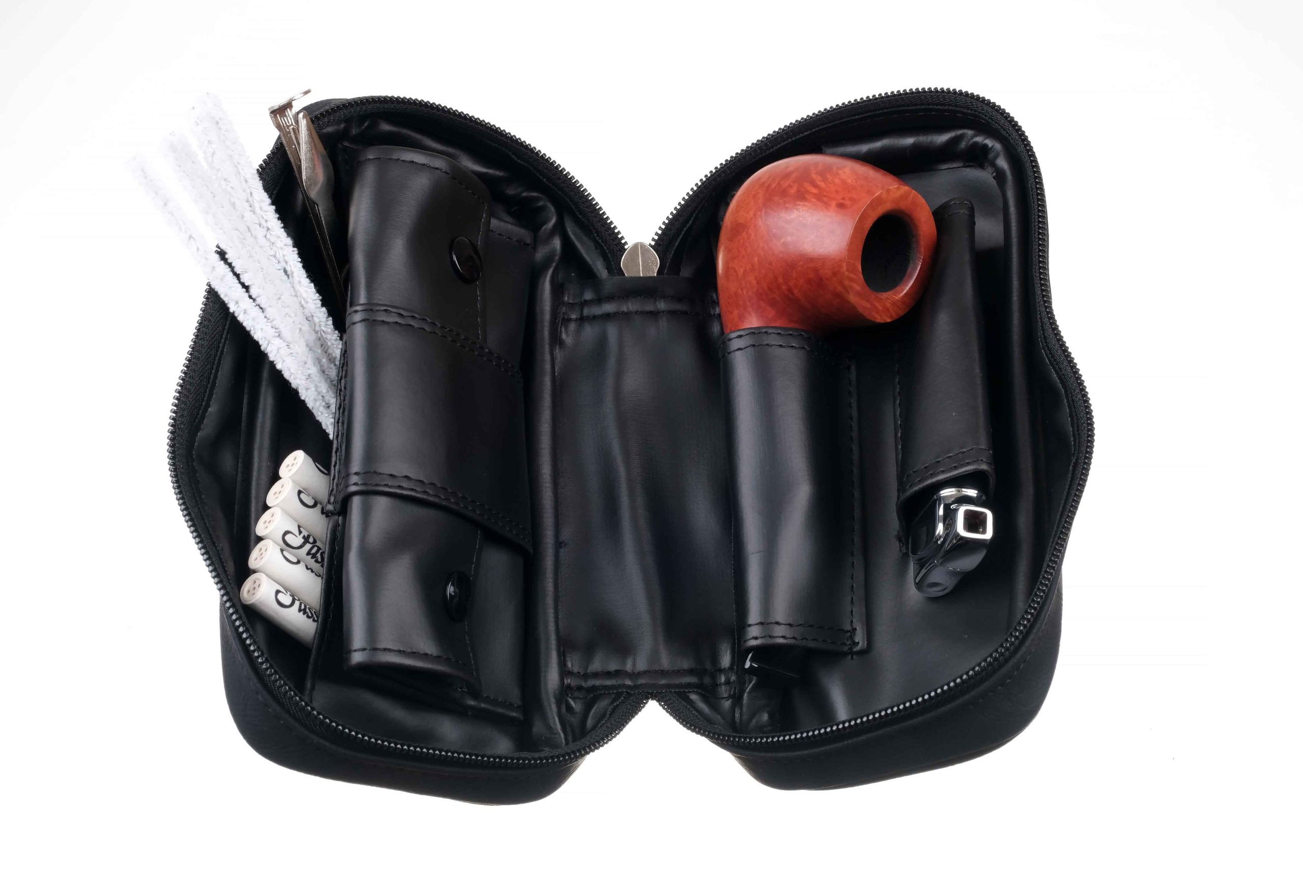 1. Кожаная сумка на 2 трубки с отделениями для аксессуаров. Размер сумки: 20 х 10 х 6,5 см.