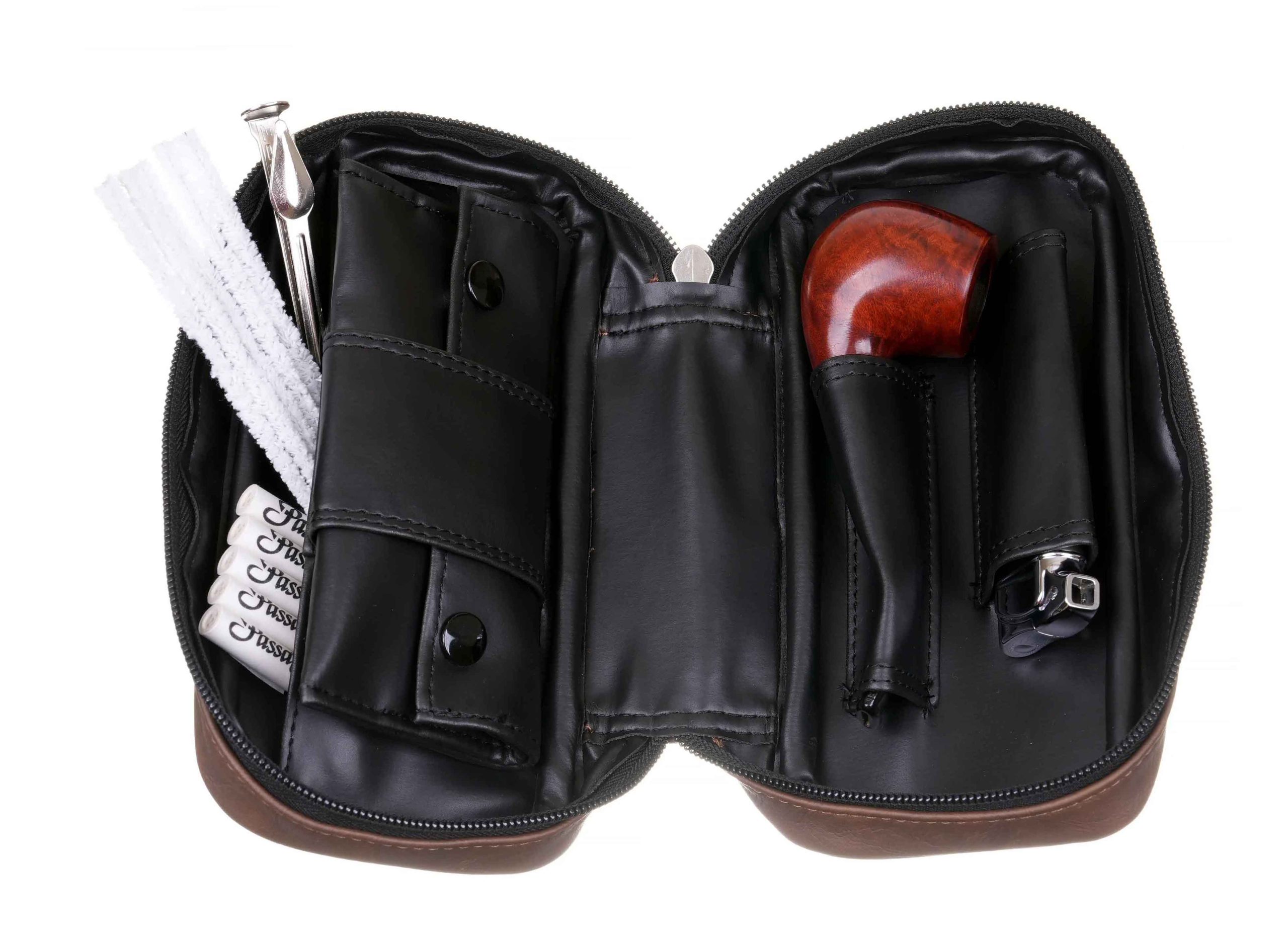 1. Кожаная сумка на 2 трубки с отделениями для аксессуаров. Размер сумки: 20 х 10 х 6,5 см