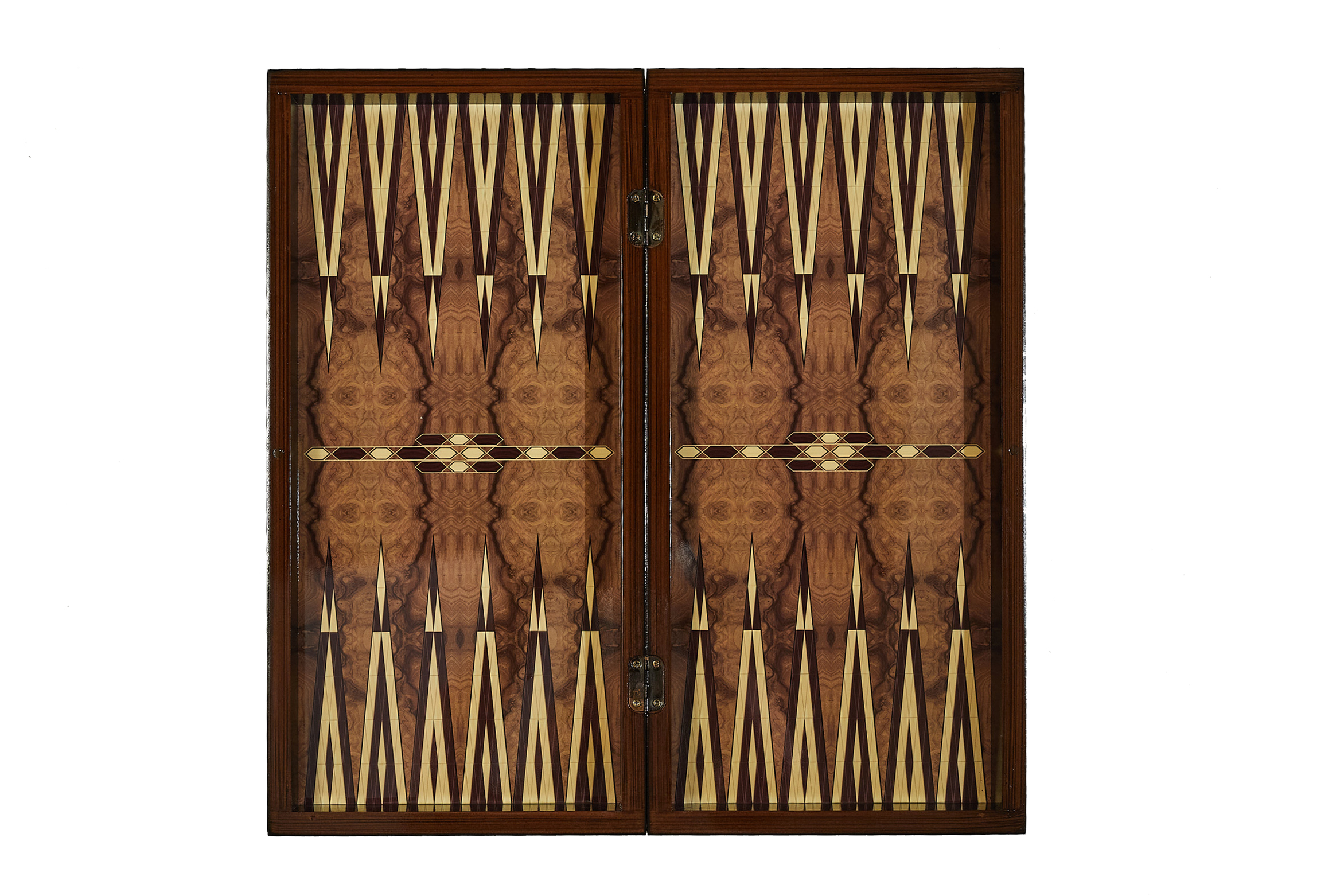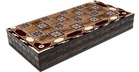 Нарды изготовлены из высококачественных плит МДФ толщиной 16 мм и 4 мм для сохранения прочности жесткой формы изделия. Рисунок переносится на доску, после чего изделие покрывается 3 слоями лака для защиты поверхности, а затем снова наносится 3 слоя глянцевого полиуретанового лака для отделки поверхности. После завершения всех процессов покраски и отделки на внешние стороны нард наносятся полоски искусственной кожи высшего качества. Вместо металлических замков установлены высококачественные неодимовые магниты.