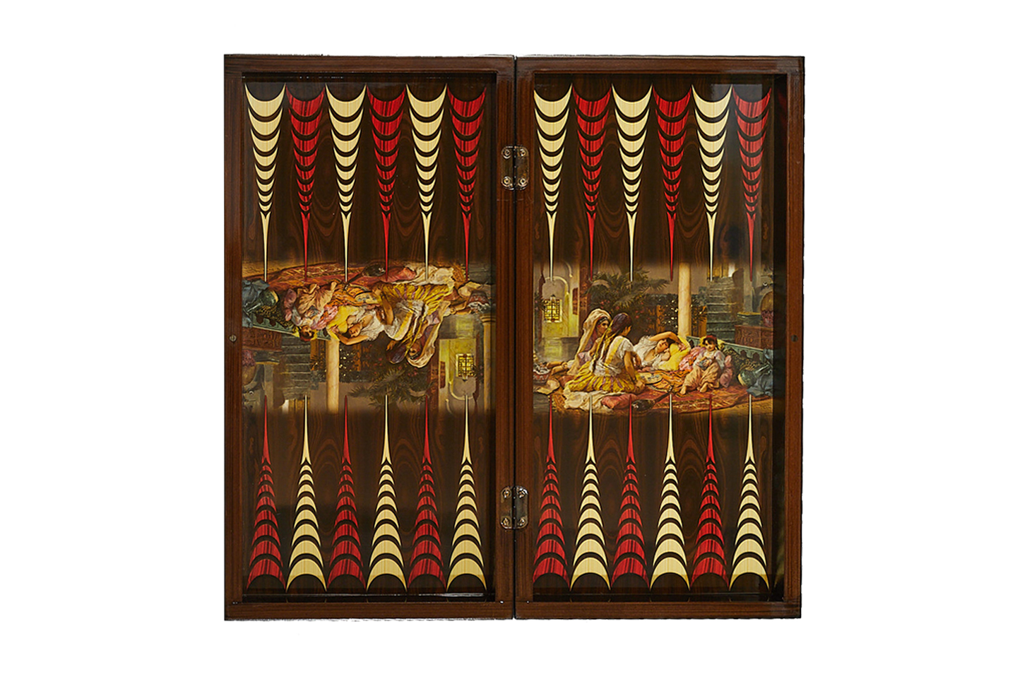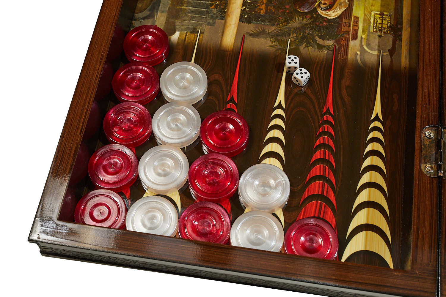 Нарды изготовлены из высококачественных плит МДФ толщиной 16 мм и 4 мм для сохранения прочности жесткой формы изделия. После профилирования по различным формам и размерам детали из МДФ переходят к этапу покрытия полиуретановым клеем с отделкой под дерево или однотонной цветной пленкой Alkorcell в соответствии с моделью изделия. После завершения всех процессов покраски и отделки на внешние стороны нард наносятся полоски искусственной кожи высшего качества. Внутренняя и внешняя игровые поверхности имеют высокую глянцевость (95%). Акриловый лак УФ-отверждения не желтеет, не содержит растворителей, запаха и паров. Вместо металлических замков установлены высококачественные неодимовые магниты.