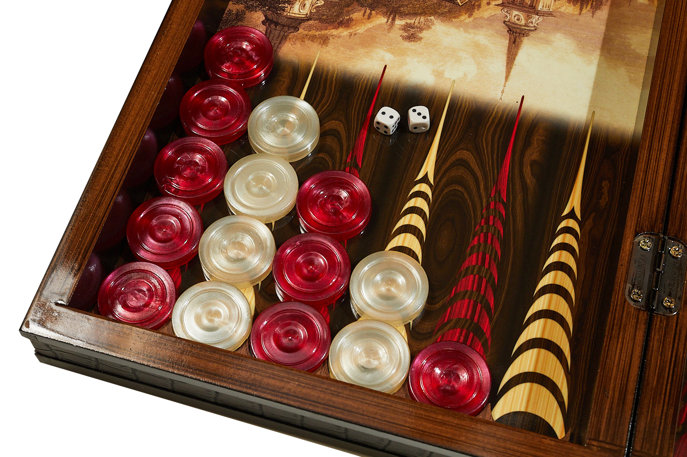 Нарды изготовлены из высококачественных плит МДФ толщиной 16 мм и 4 мм для сохранения прочности жесткой формы изделия. После профилирования по различным формам и размерам детали из МДФ переходят к этапу покрытия полиуретановым клеем с отделкой под дерево или однотонной цветной пленкой Alkorcell в соответствии с моделью изделия. После завершения всех процессов покраски и отделки на внешние стороны нард наносятся полоски искусственной кожи высшего качества. Внутренняя и внешняя игровые поверхности имеют высокую глянцевость (95%). Акриловый лак УФ-отверждения не желтеет, не содержит растворителей, запаха и паров. Вместо металлических замков установлены высококачественные неодимовые магниты.