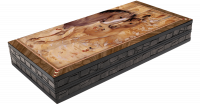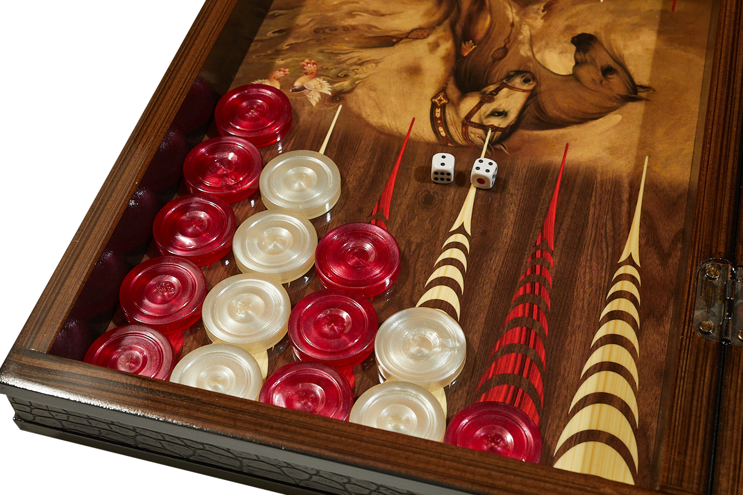 Нарды изготовлены из высококачественных плит МДФ толщиной 16 мм и 4 мм для сохранения прочности жесткой формы изделия. После профилирования по различным формам и размерам детали из МДФ переходят к этапу покрытия полиуретановым клеем с отделкой под дерево или однотонной цветной пленкой Alkorcell в соответствии с моделью изделия. После завершения всех процессов покраски и отделки на внешние стороны нард наносятся полоски искусственной кожи высшего качества. Внутренняя и внешняя игровые поверхности имеют высокую глянцевость (95%). Акриловый лак УФ-отверждения не желтеет, не содержит растворителей, запаха и паров. Вместо металлических замков установлены высококачественные неодимовые магниты.