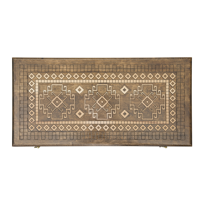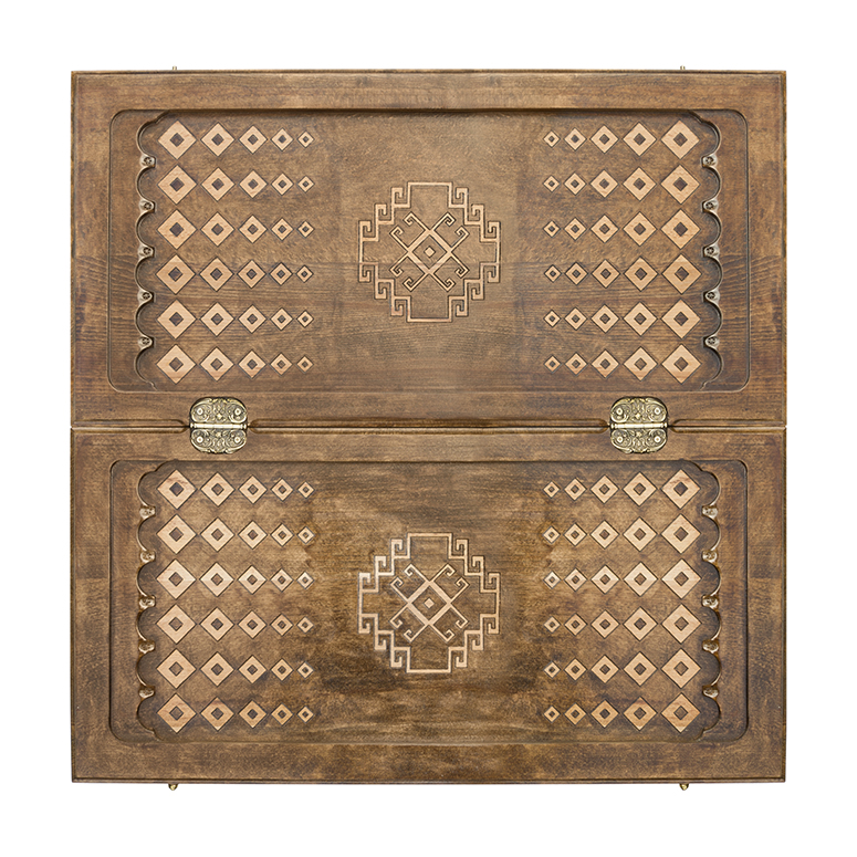 В Армении делают одни из лучших деревянных поверхностей для игр, что ярко видно на примере нард резных «Армянский Ковер». Они сделаны Давид Мхитарян из бука, что позволяет не беспокоиться о прочности и сроке эксплуатации. Створки соединены между собой петлями из бронзы, а закрываются при помощи крючка, вылитого в необычной форме.