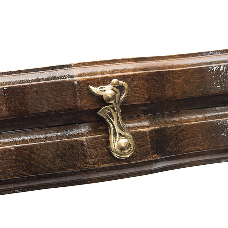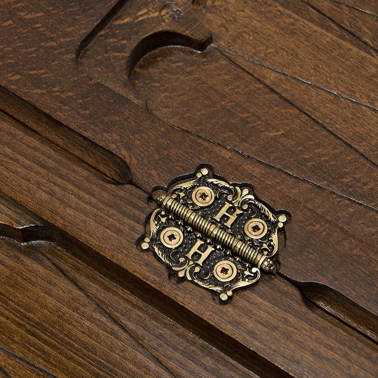 Для обеспечения достойного уровня прочности, используется древесина бука. Она обладает особенной структурой, которая служит неким амортизатором, спасающим от поломок при случайных падениях и ударах. Она способна служить долгое время, конечно, если не оставлять доску под прямыми солнечными лучами, не проливать жидкости, не подвергать излишним перепадам температур и периодически очищать от загрязнений. Защиту от влажности обеспечивает лакированное покрытие, которое имеется на всех поверхностях, а также это добавляет блеска. Крючки и петли здесь бронзовые и гарантируют множество циклов открытия створок.
