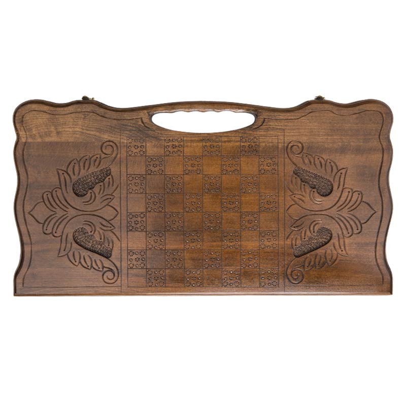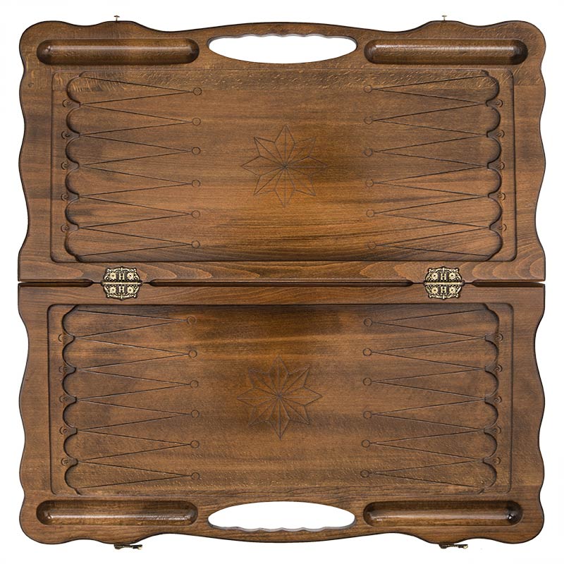 Сбоку доски вырезана ручка с эргономичными вырезами, что позволяет легко брать в руку и носить с собой. Для предотвращения попадания пыли и грязи, предусмотрен специальный чехол из плотной ткани. В него легко помещается доска со всеми комплектующими, где они будут в безопасности. Он также позволяет хранить нарды, только держите их в комнате с нормальной температурой, т.к. излишне высокая или низкая могут привести к появлению трещин.Характеристики