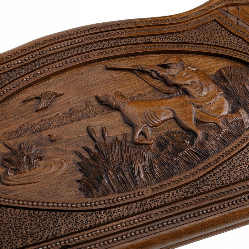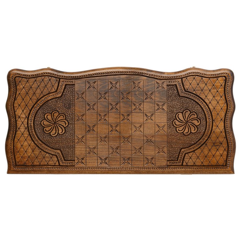 Нарды резные "Охота", сделанные из древесины бука собственными руками мастера Артура Мирзояна, чье имя стало известно далеко за пределами Армении, благодаря отличному качеству. Он уделяет внимание каждой детали, даже которых не видно на первый взгляд. Древесина бука обладает отличным показателем прочности, поэтому можно будет не сильно беспокоиться о возможности поломки изделия. Бук очень хорошо сопротивляется механическим повреждениям, вроде ударов и падений, и не позволяет появиться трещинам. Части доски, украшенной изысканными узорами, скреплены между собой фурнитурой из латуни. Петли и крючки выливаются в специальных формах. Сама же доска покрыта защитным лаком, предотвращающим появление царапин. На каждой фишке прикреплена бархатная подложка, что также предотвращает появление царапин в процессе игры.