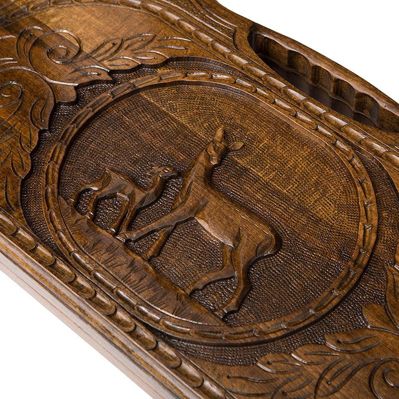Нарды резные олень изготовлены под строгим контролем мастера из Армении Карена Халеяна. Все, что вы видите выполнено вручную, а не каким-то механизмом. Каждая деталь и малейший элемент максимально проработаны, чтобы дарить радость обладателю. Буковое дерево обладает хорошими техническими показателями:- прочность