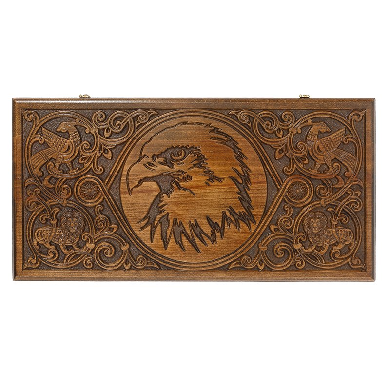 Нарды резные "Орел" Люкс по цене 34990 р. Купить товар вы можете в магазине подарков Boxru.ru. Доставка по Москве и России, самовывоз из пункта выдачи (м. Преображенская площадь). Оплата наличными, картой, безналичным расчетом, а также через Яндекс.Деньги и WebMoney.