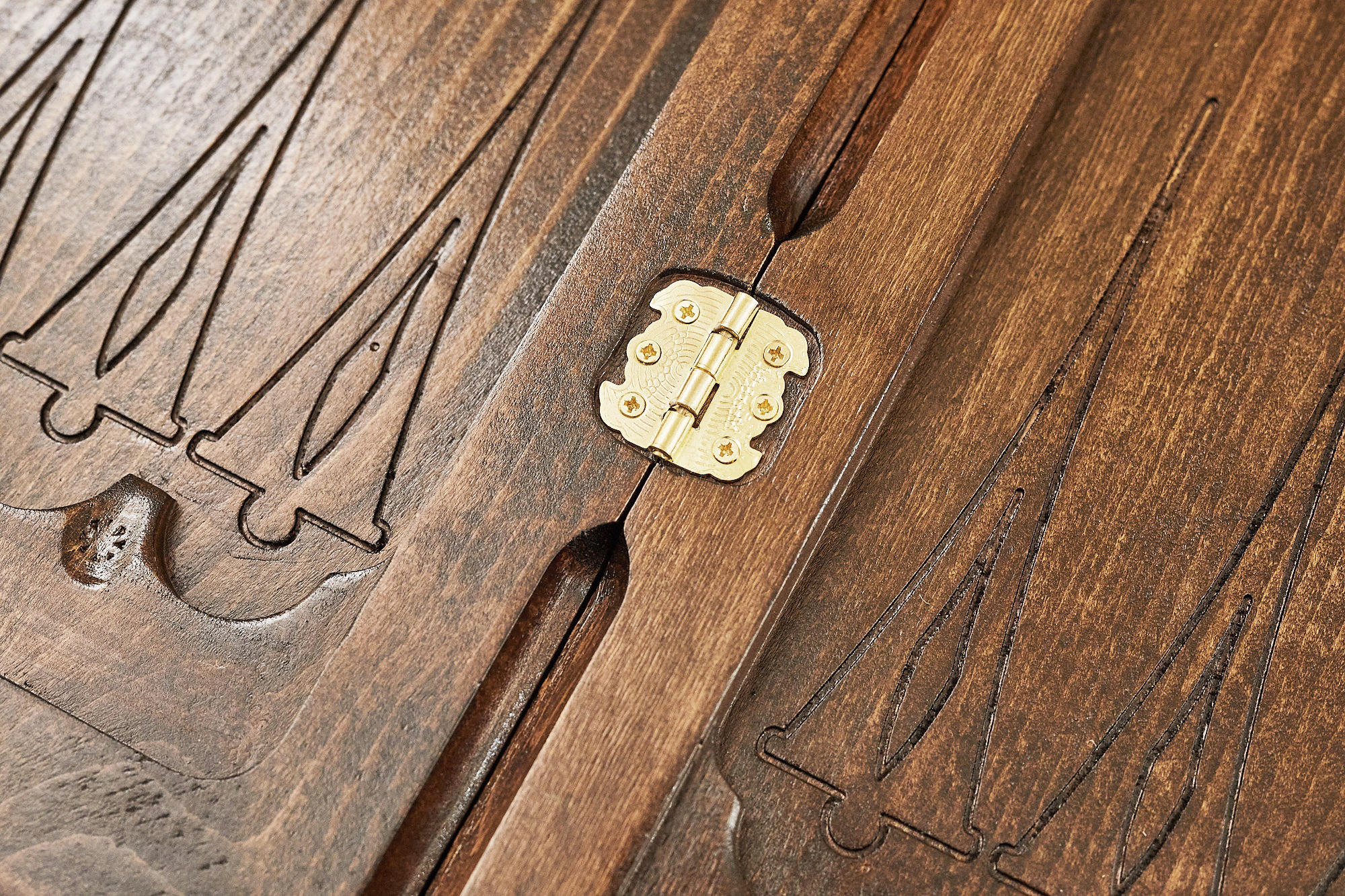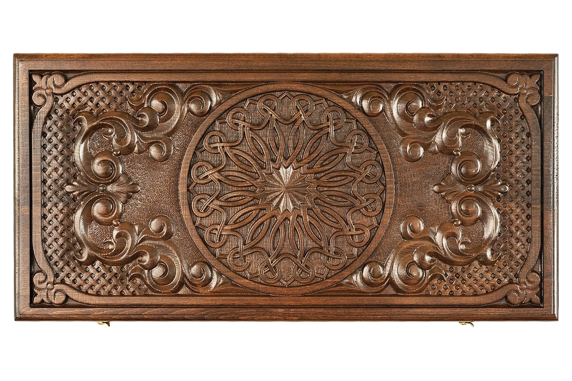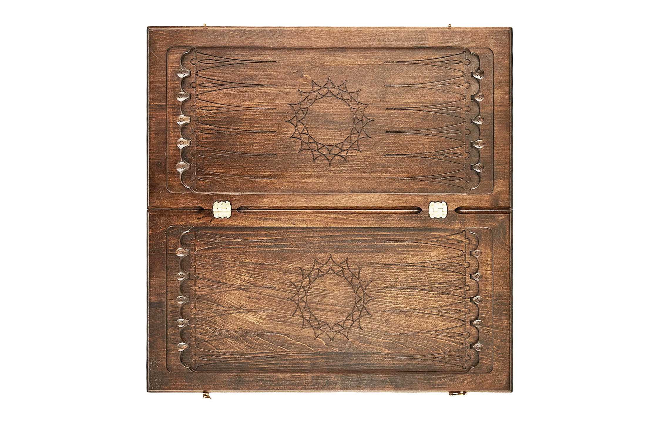 Части доски скреплены между собой надежной фурнитурой из настоящей бронзы, а также покрыты глянцевым защитным лаком, который предотвращает образование царапин.
