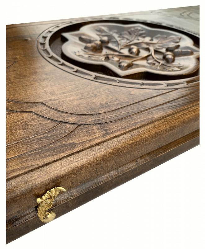 Набор подарочных нард «Ветвь дуба» порадует своим качеством и дизайном даже самых взыскательных ценителей классических настольных игр. Комплект выполнен знаменитым армянским мастером вручную, каждая деталь проработана с особой тщательностью и скрупулезностью. В качестве основного материала используется натуральная древесина.