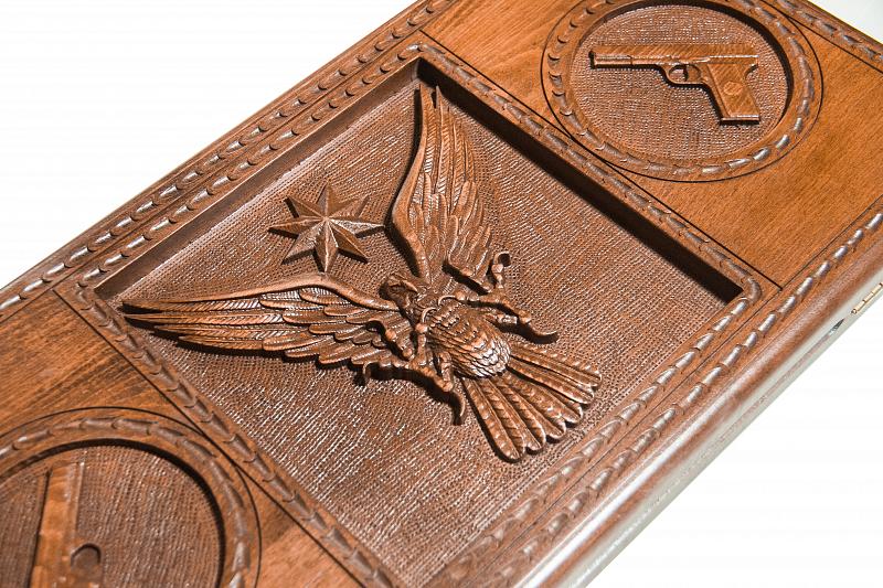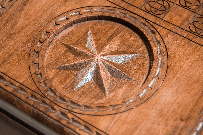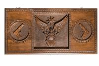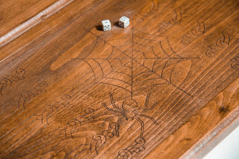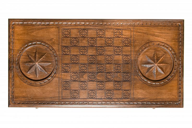 Мастера из Армении всегда уделяют большое внимание своим изделиям, причём не только в части используемых материалов, но и в оформлении, что и видно по резным нардам «Жизнь блатная». Здесь Григорий Устян решил применить бук, который отличается хорошей прочностью, но при этом позволяет купить нарды недорого. Петли и крючки сделаны из бронзы, способной выдерживать сотни открытий створок. На лицевой стороне задней створки предусмотрено специальное поле для игры в шашки.Лицевая сторона нард выполнена в сдержанном стиле, ее украшает парящий орел и два пистолета, благодаря специфической тематике нарды можно взять себе либо преподнести в качестве подарка близкому человеку.