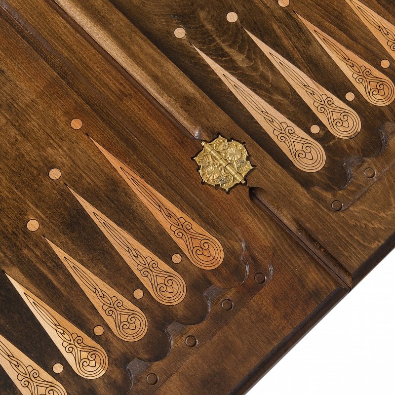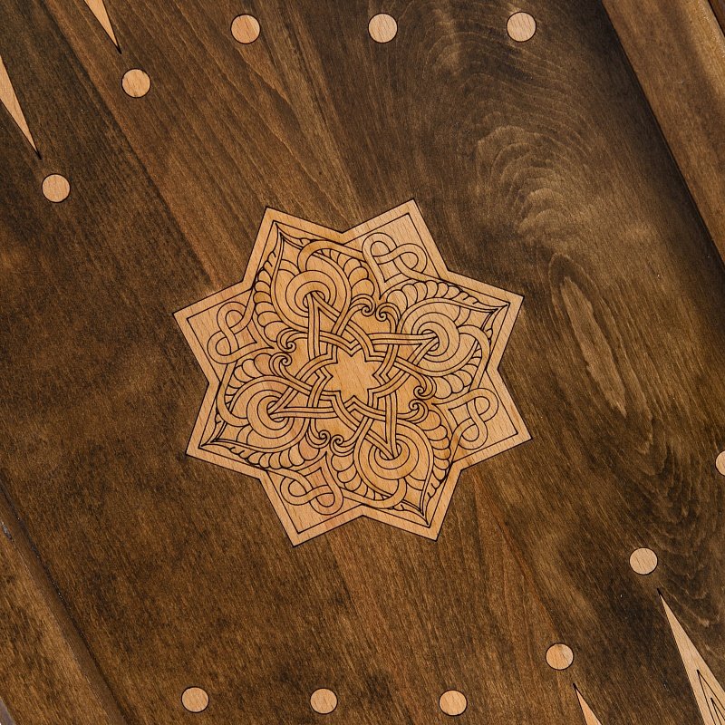 Нарды резные "Золотой Узор 1", выполнены из древесины бука собственными руками мастера Артура Мирзояна, чье имя стало известно далеко за пределами Армении, благодаря отличному качеству.